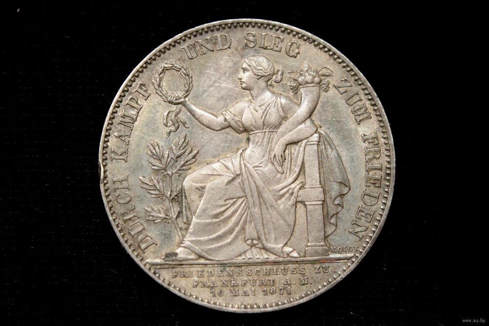 Талер 1871 г. Бавария (Германия), Людвиг II. "Победа Германии во Франко-прусской войне". Кабинетная патина, пореже!
