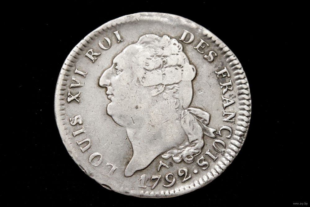 Талер (экю) 1792 г. Франция, Людовик XVI. Редкая!