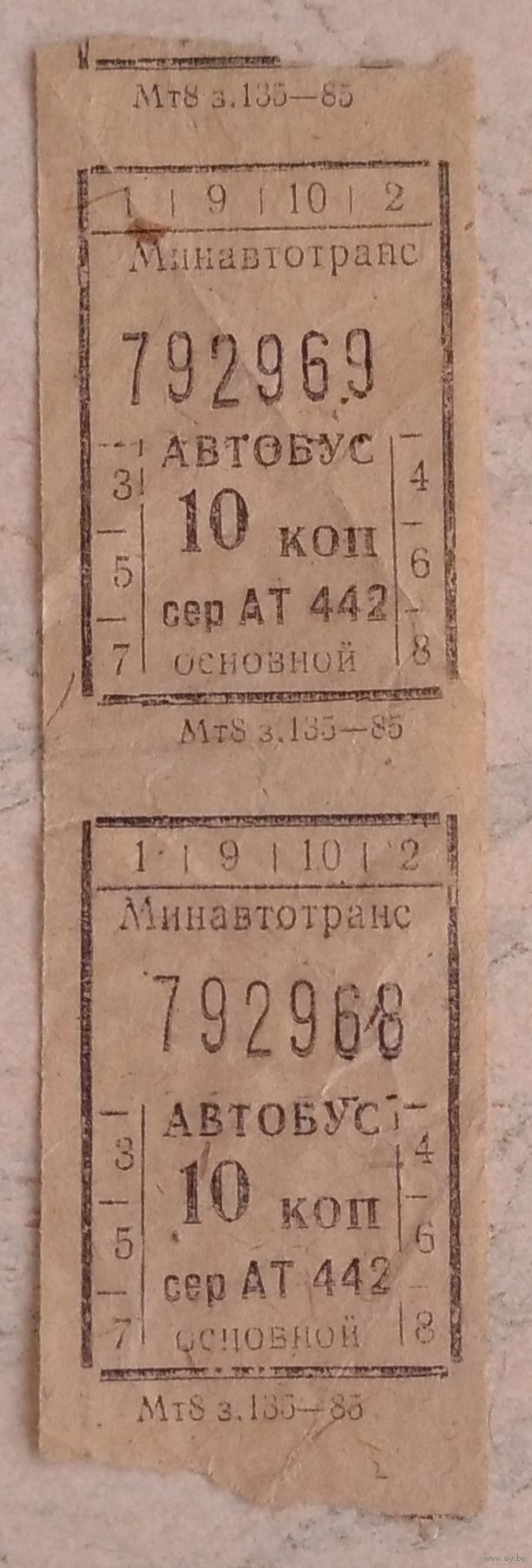 Талон 10 копеек автобус 1985. Возможен обмен