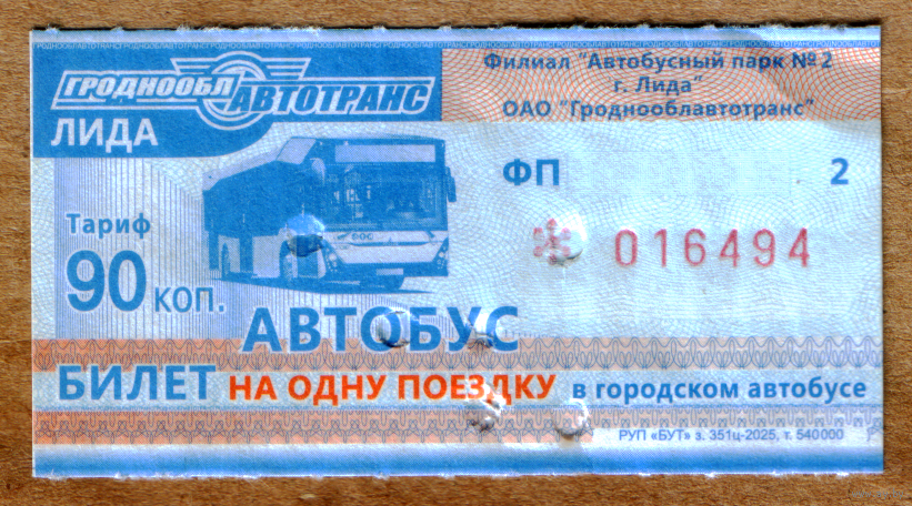 Талон автобус Лида ФП