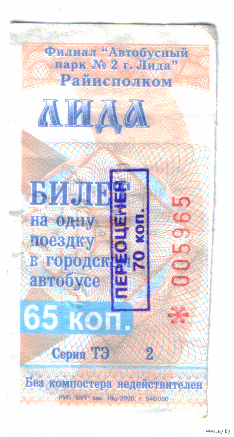 Талон автобус Лида ТЭ с переоценкой