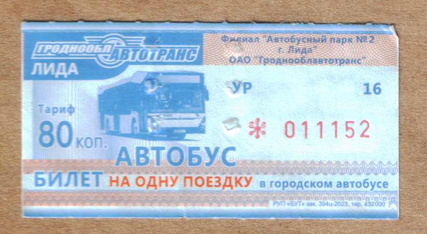 Талон автобус Лида УР