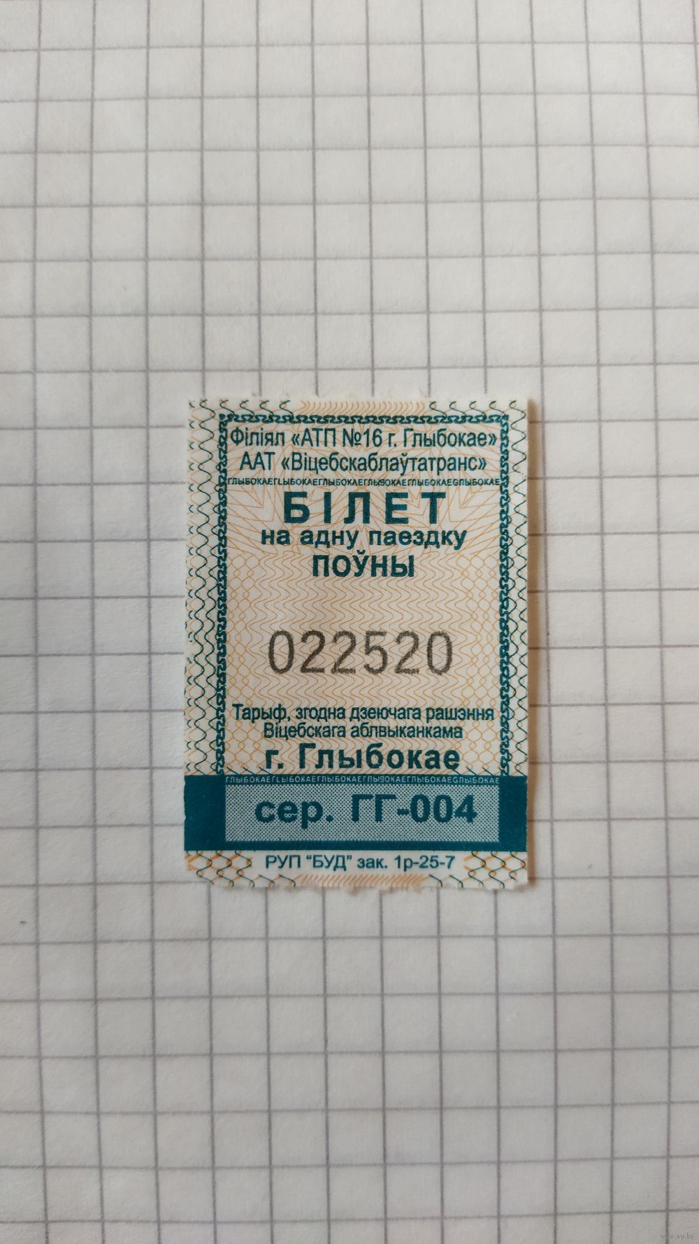 Талон на одну поездку. Серия ГГ-004