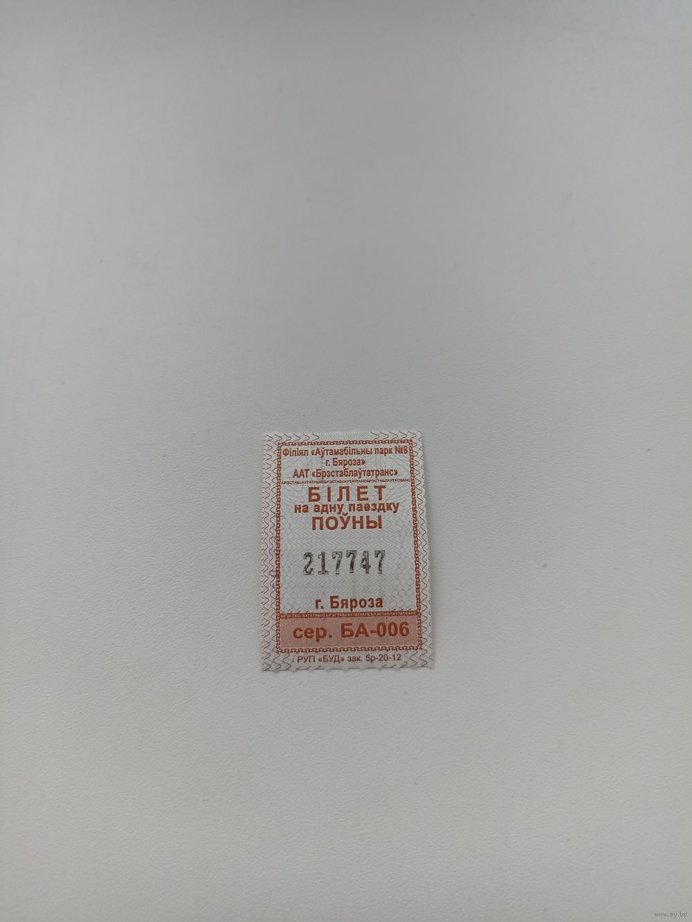 Талон на проезд ( г.Берёза, серия БА-006)2020 год