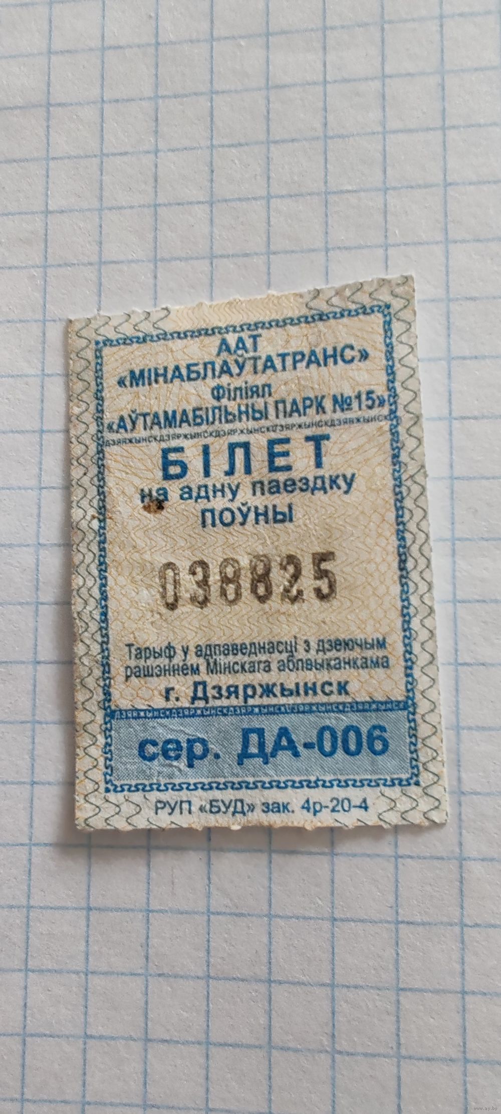Талон на проезд г. Держинск