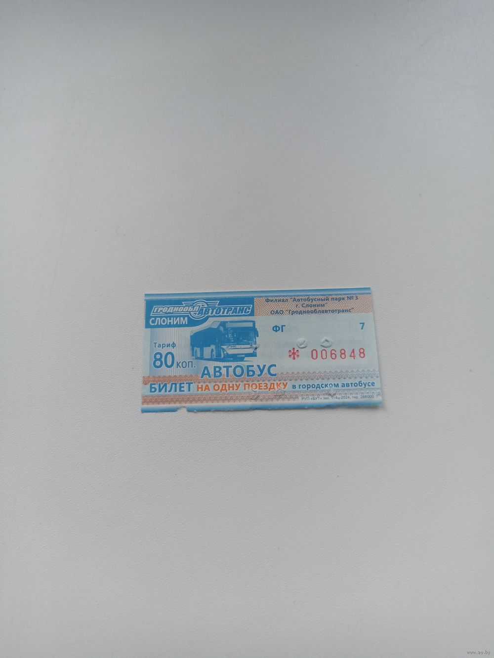 Талон на проезд ( СЛОНИМ ,80 коп.,серия ФГ)2024 год