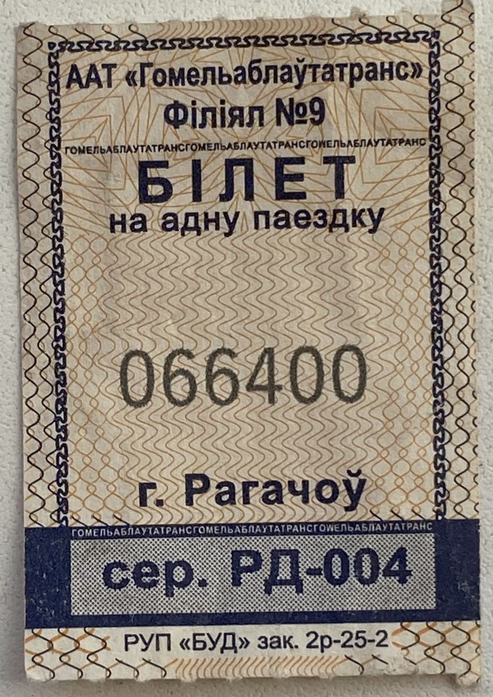 Талон на проезд в автобусе г. Рогачов, Беларусь 2025 г.