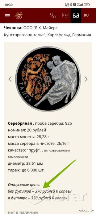 Цена на сайте национального банка 370р, я же уступлю за 350р, лучшая цена в РБ! Поэтому без торга.