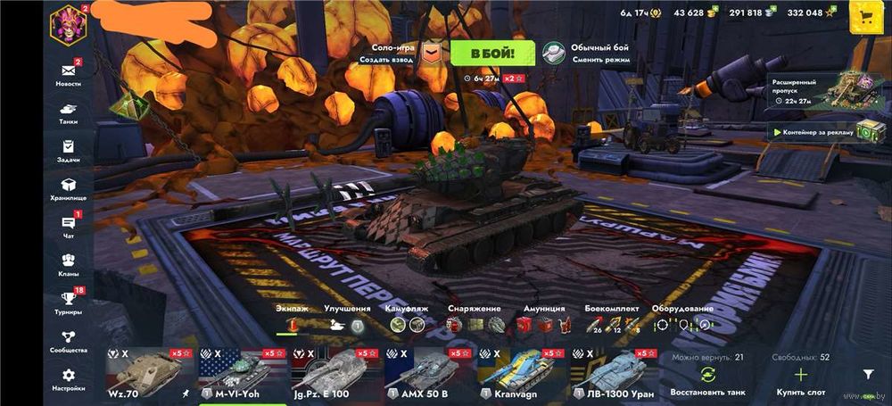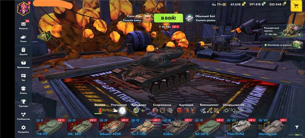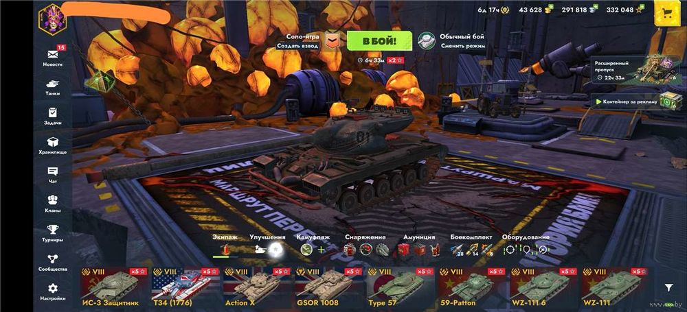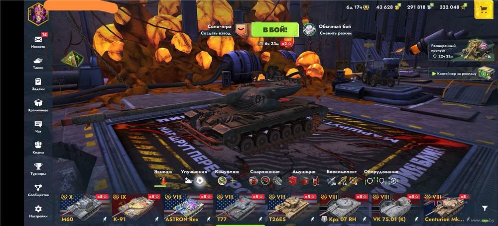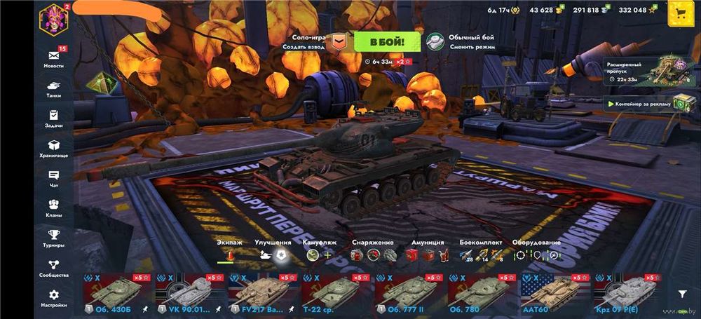 12 коллекционок 10 уровня(объект 777,обьект 430б, обьект 780,вк90. 01,т22ср,баджер, аат60, kpz07b, 116 f3, обьект 907, kpz 50 t,xm66f )Ещё 6 коллекционных 9 уровня(объект 283,обьект 452к,tl-7-120,кобра, bz 58-2,wz 114)14 топов( ис7, маус, фв4005, батчат, минотавр, wz. 70,йох, яга, 50б,кранван, лв1300, м60,Sheridan, Type 71)Много танков с легендарным камуфляжем. Около 40 премов 7-10 уровня