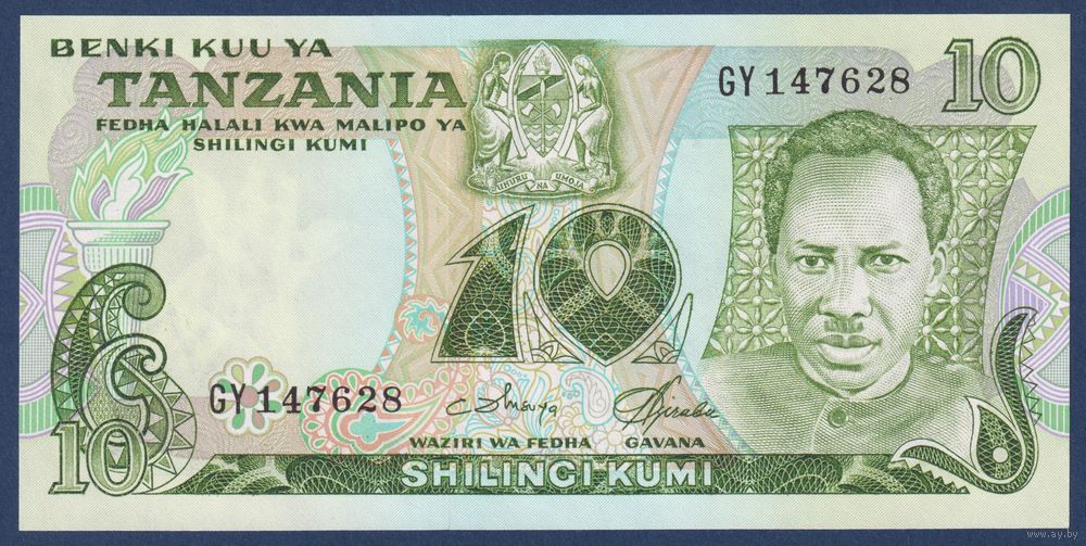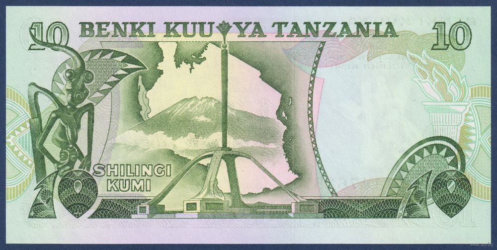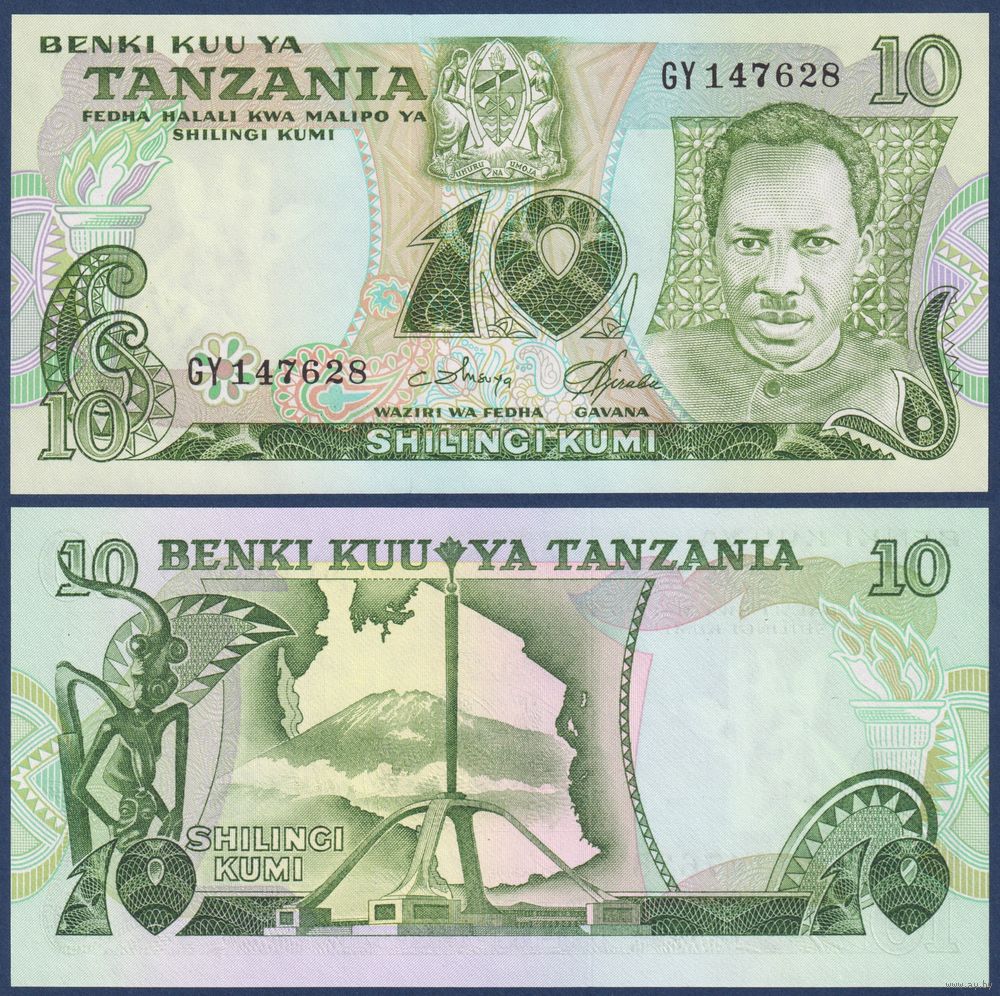 Танзания, 10 шиллингов 1978 г., P-6c (GY, президент Джулиус Камбараге Ньерере, гора Килиманджаро), UNC