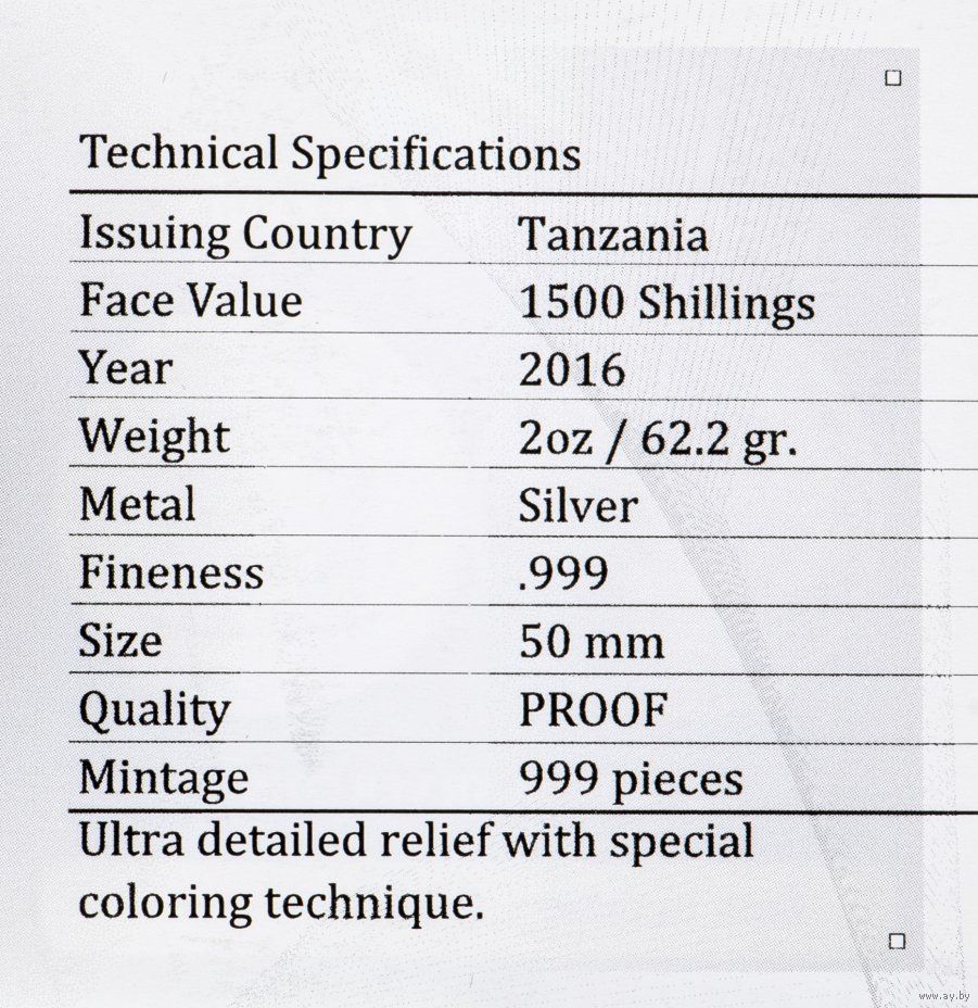 Детализация и высокий рельеф монеты достигнут благодаря применению уникальной технологии чеканки Smartminting.