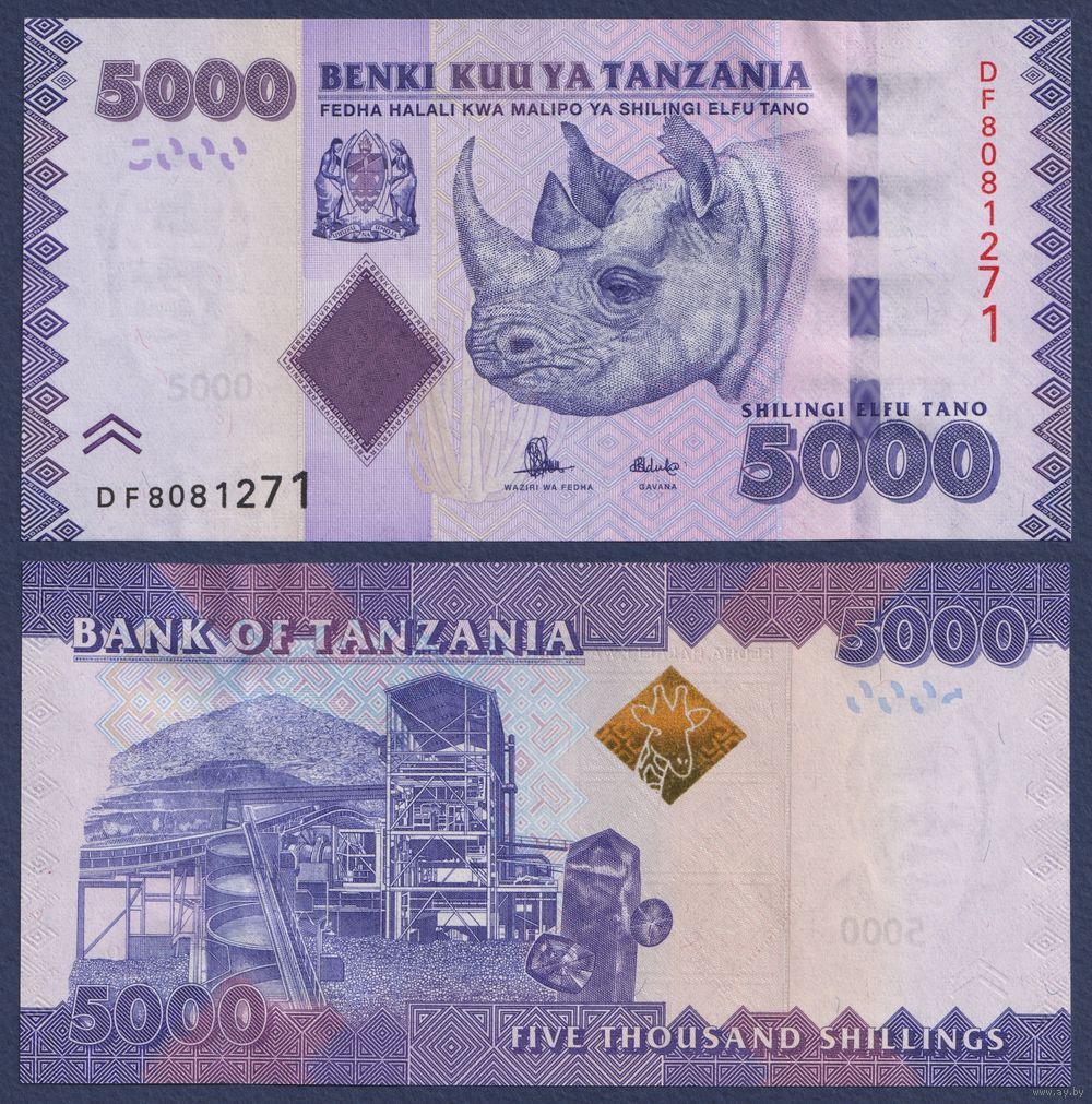 Танзания, 5000 шиллингов 2010 - 2020 г, P-43b (DF, носорог, завод на золотых рудниках Гейты), UNC