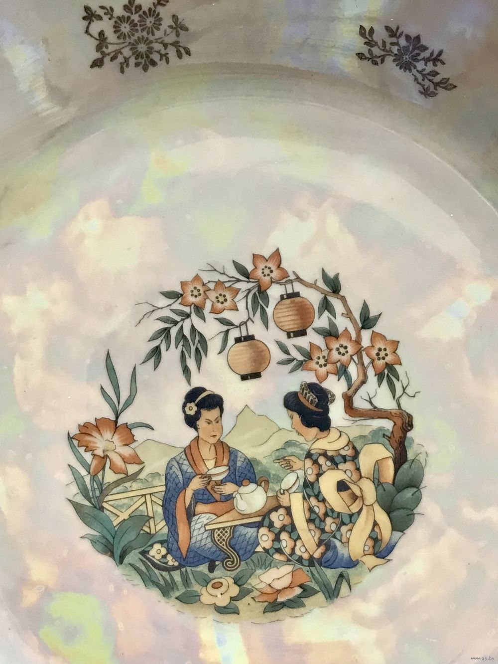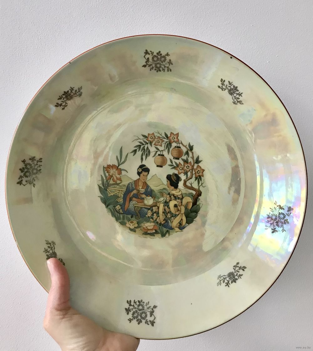 Фарфоровая тарелка, ГДР. Деколь, люстр, диаметр 29,5см. Состояние хорошее.