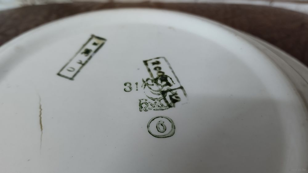 Тарелка БУДИ. Клейма на фарфоре Будянский фаянсовый завод - Серп и Молот (Буды). 1967-1991 ГГ.
