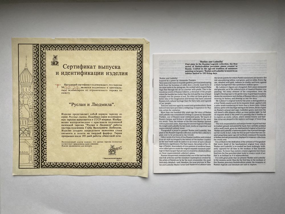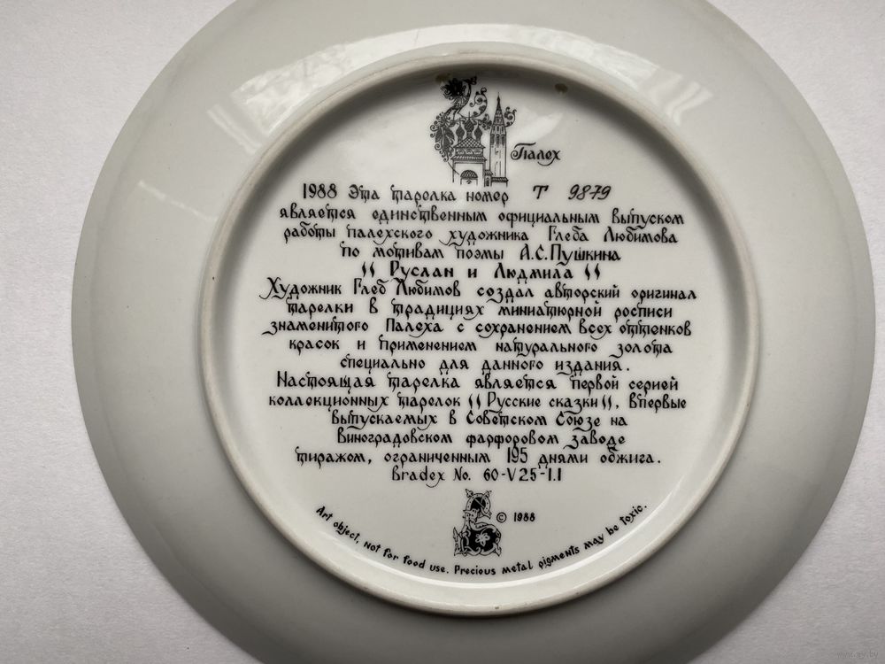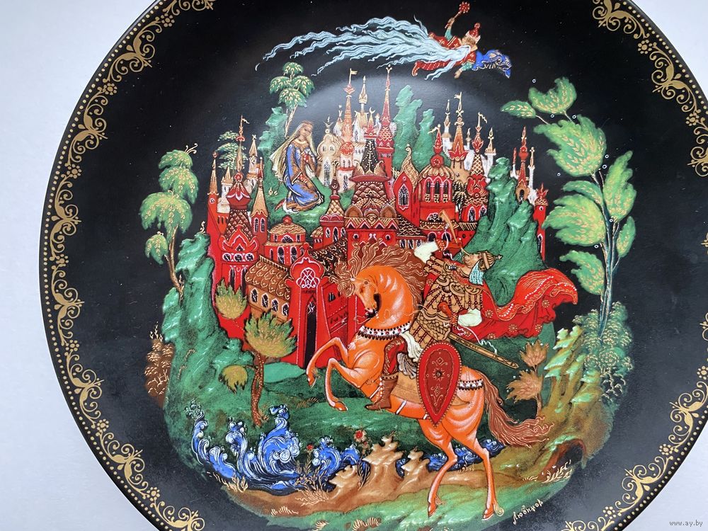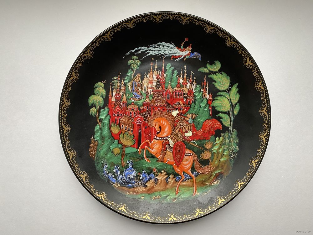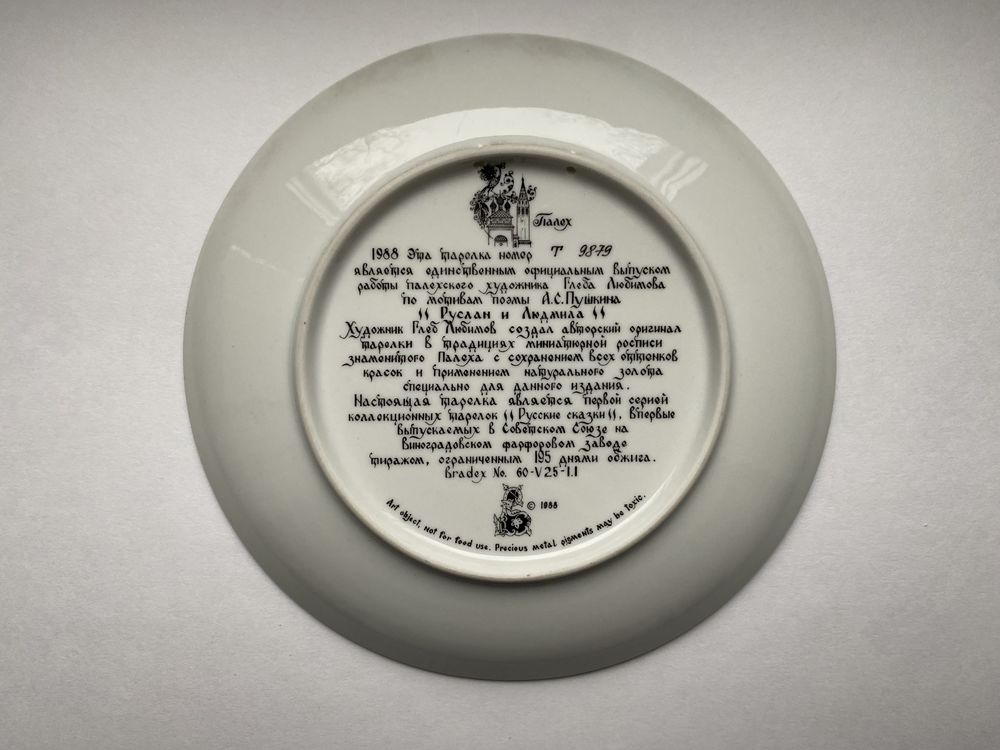 Тарелка декоративная из серии "Руслан и Людмила", Палех, фарфор, 1988г. Виноградовский ФЗ.