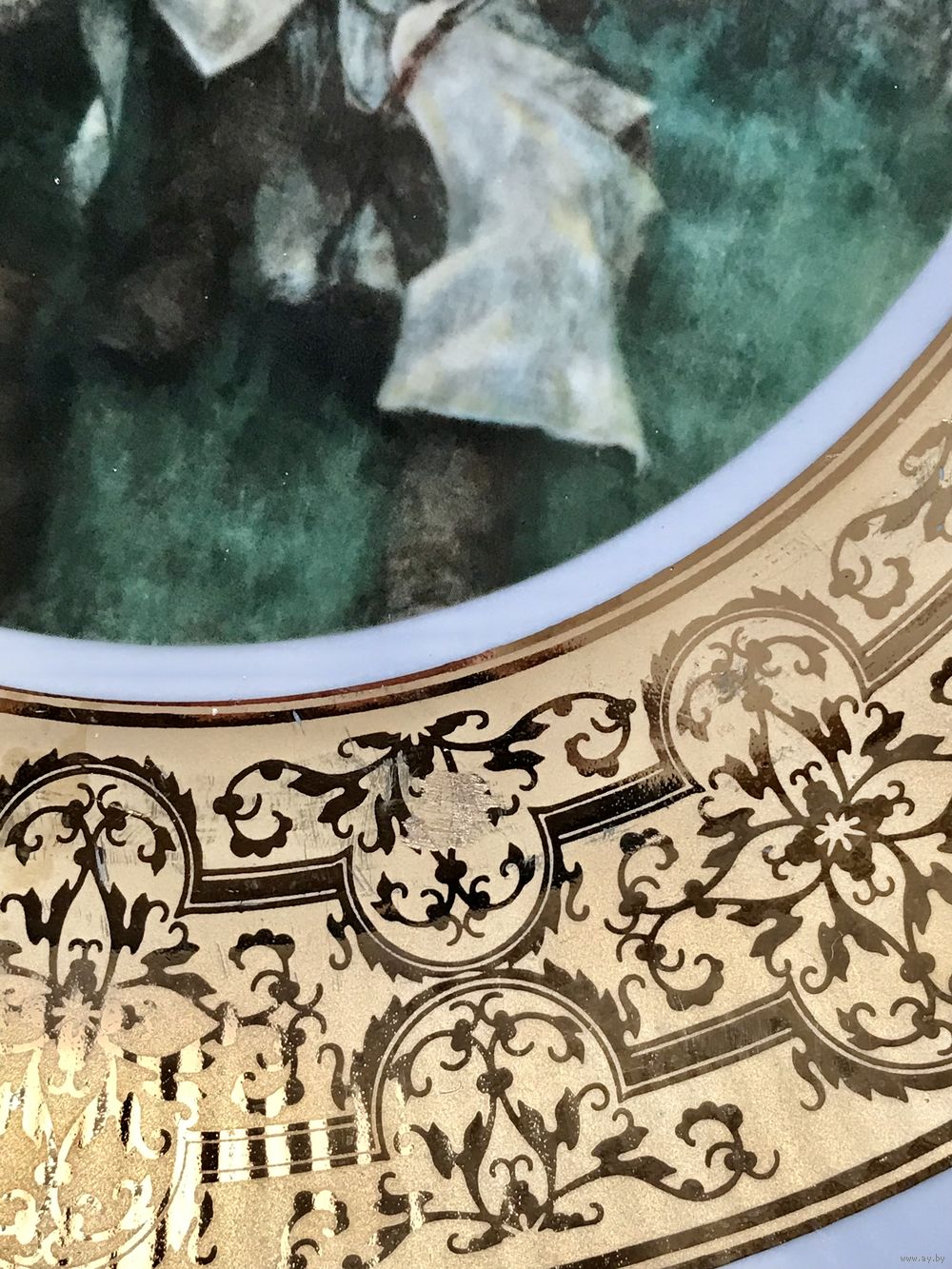 Большая винтажная фарфоровая декоративная тарелка. Производитель Walbrzych Польша. Диаметр 32,5см., деколь, золочение. В нескольких местах есть небольшие потёртости позолоты и царапки. Общее состояние хорошее.