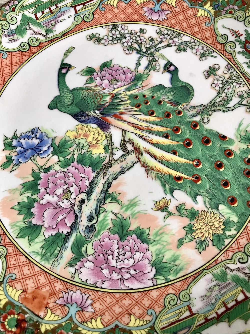 Винтажная декоративная фарфоровая тарелка. Деколь с ручной подрисовкой. Диаметр 26см. Состояние хорошее. Продаётся вместе с подставкой.