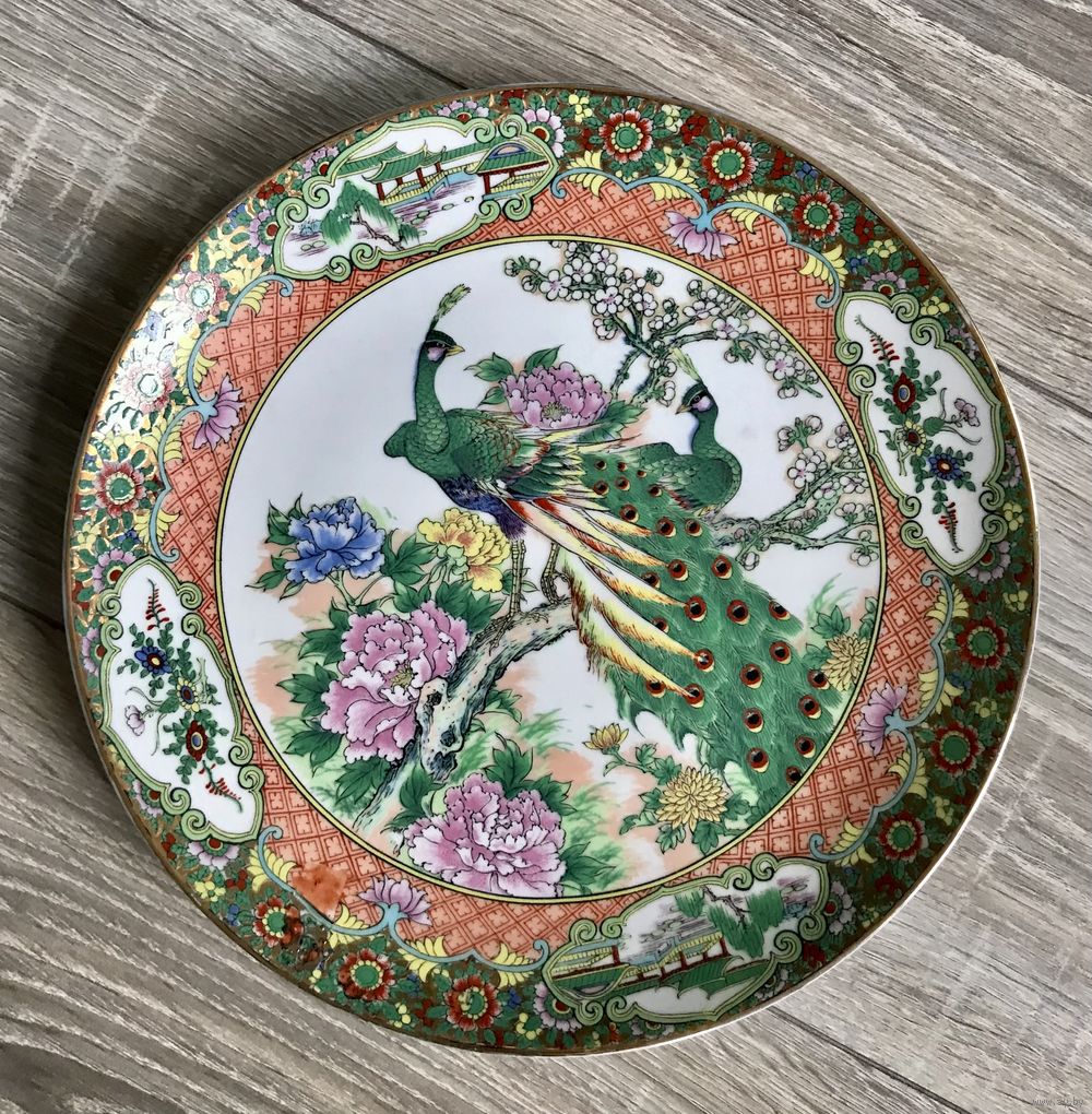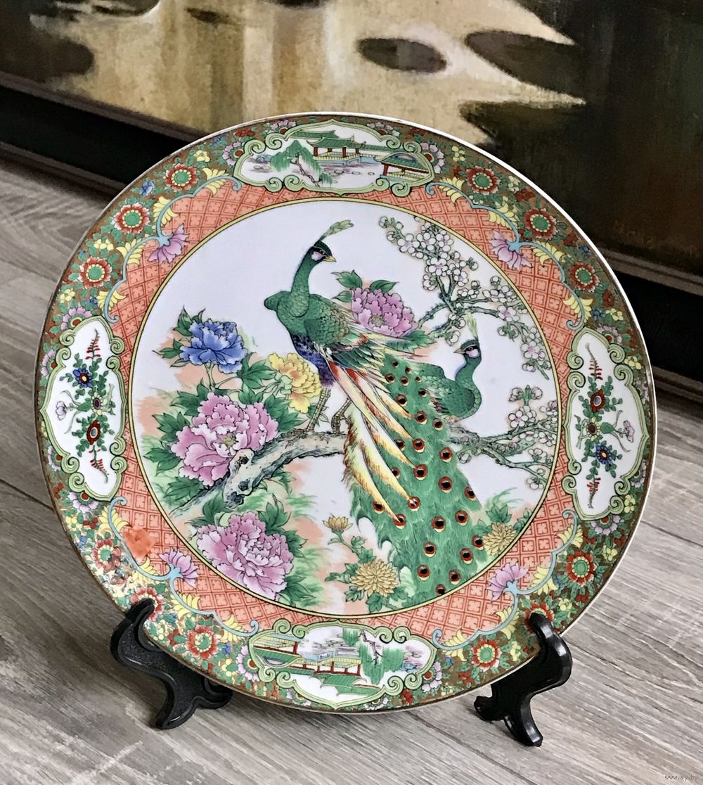 Винтажная декоративная фарфоровая тарелка. Деколь с ручной подрисовкой. Диаметр 26см. Состояние хорошее. Продаётся вместе с подставкой.