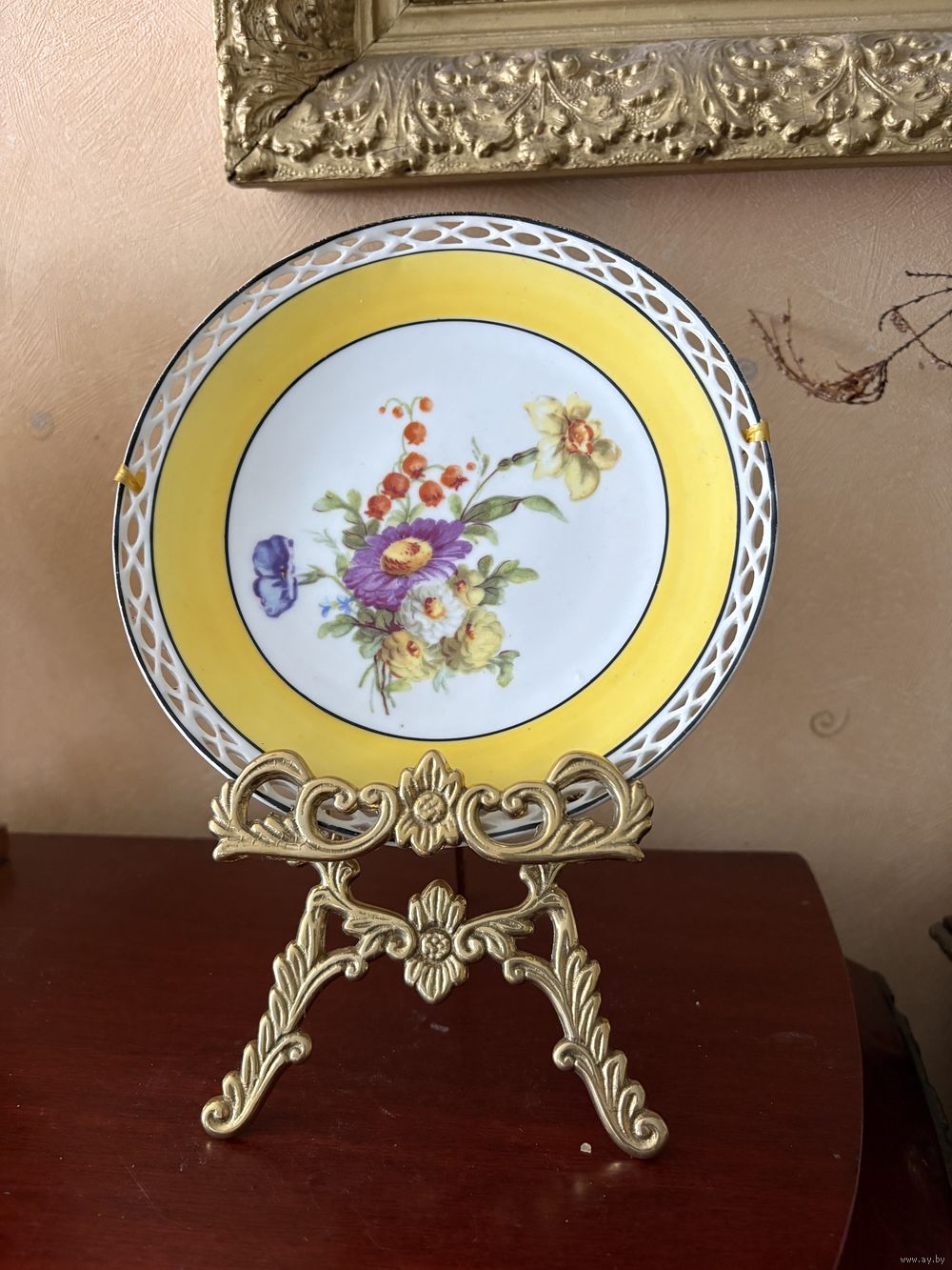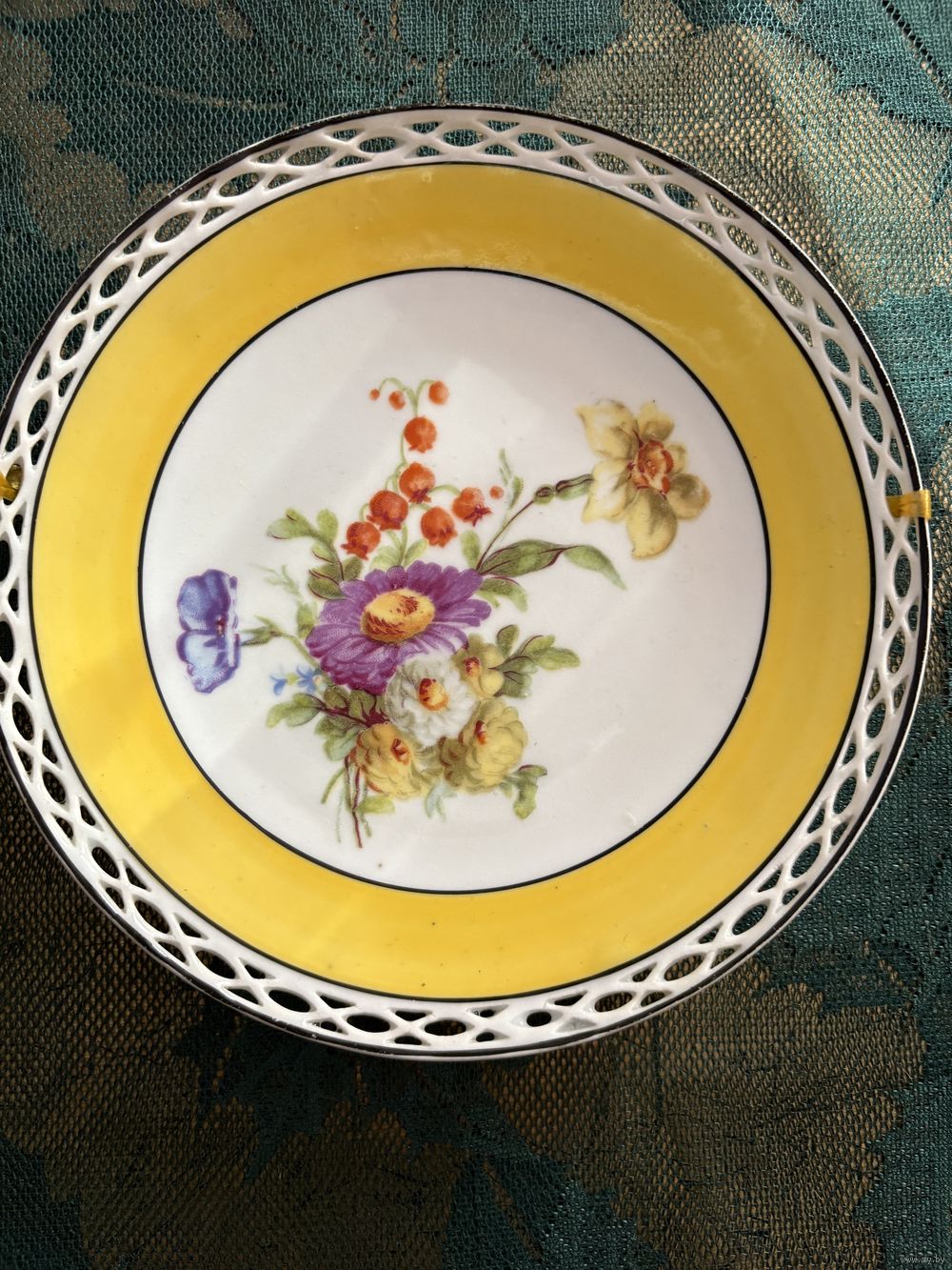 Красивая тарелка , цветы , диаметр 17 см , ажурный Кант