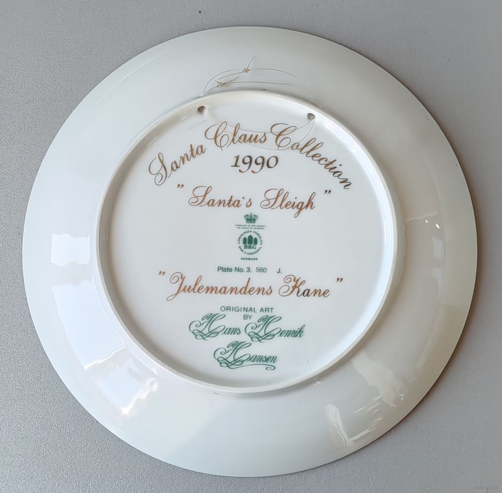 Тарелка декоративная из серии "Коллекция Санта Клауса", "Сани Санты", 1990 год. Дания