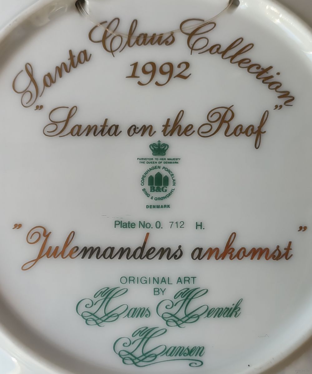 Тарелка декоративная из серии "Коллекция Санта Клауса", "Санта на крыше", 1992 год. Дания