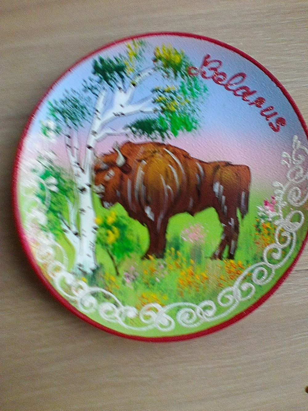 Тарелка Фарфоровая Сувенирная - "Зубр - Беларусь" - Диаметр 20 см - Можно Вешать на Стену.