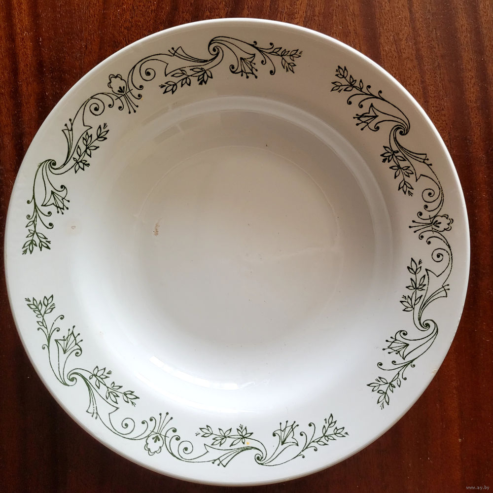 Тарелка фаянсовая 20×3,5 см. Краснодарский фарфоро-фаянсовый завод "Чайка", клеймо в тесте 1960-х годов.