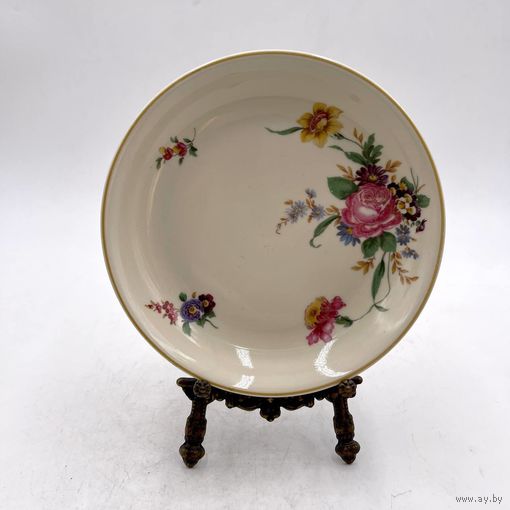 Антикварная фарфоровая тарелка от мануфактуры Hutschenreuther (Хутченройтер), цветочный декор серии Margarete. Германия. Клеймо 1946 - 1948. Диаметр 19,5 см. Глубина 3 см.