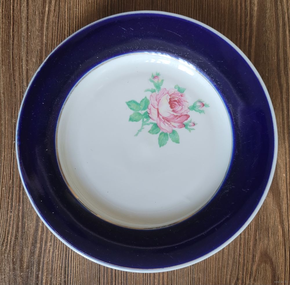 Тарелка 17,5 см, крытьё кобальт, деколь. Барановский фарфоровый завод, клеймо 1970-91 гг.