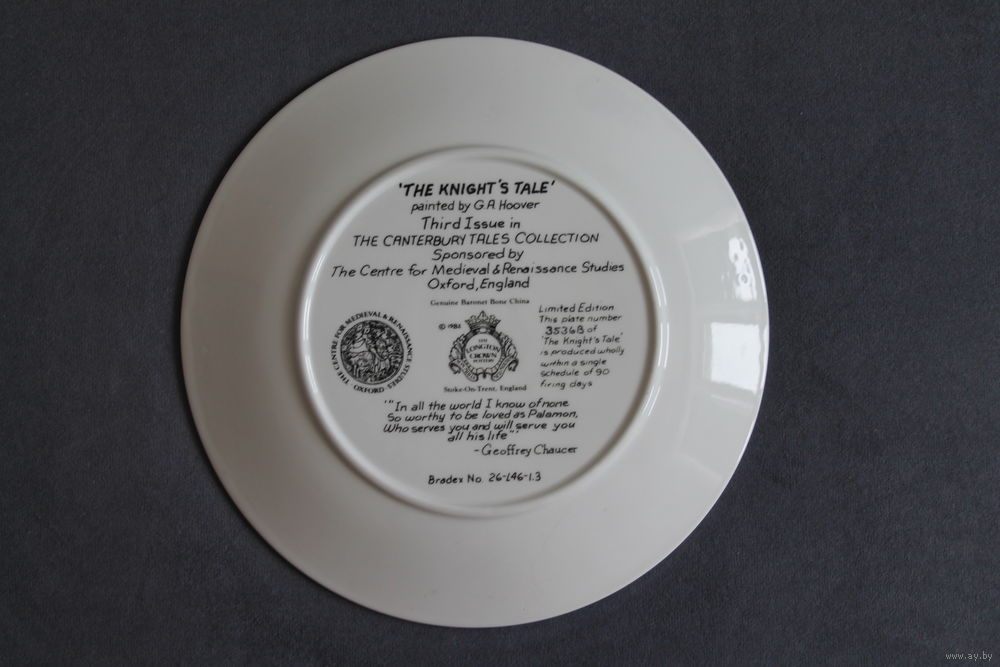 Тарелка коллекционная [Англия, Longton Crown Pottery, Кентерберийские рассказы. Рассказ Рыцаря, Bradex #26-L46-1.3] D=21,5см.