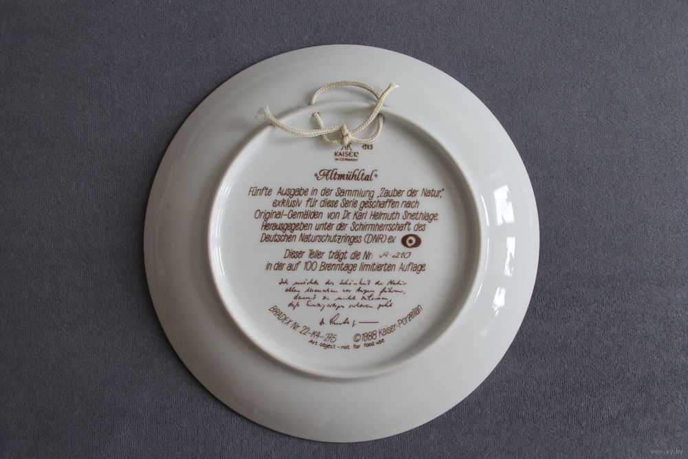 Тарелка коллекционная настенная [1988г., Германия, Kaiser, Альтмюль, Bradex #22-K4-27.5] D=19,5см.