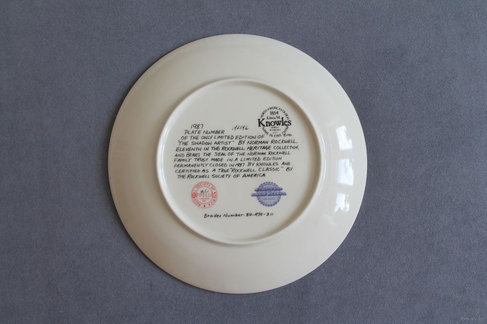 Тарелка коллекционная [США, Knowles, Театр теней (Норман Роквелл), Bradex #84-R70-3.11] D=21,5см.