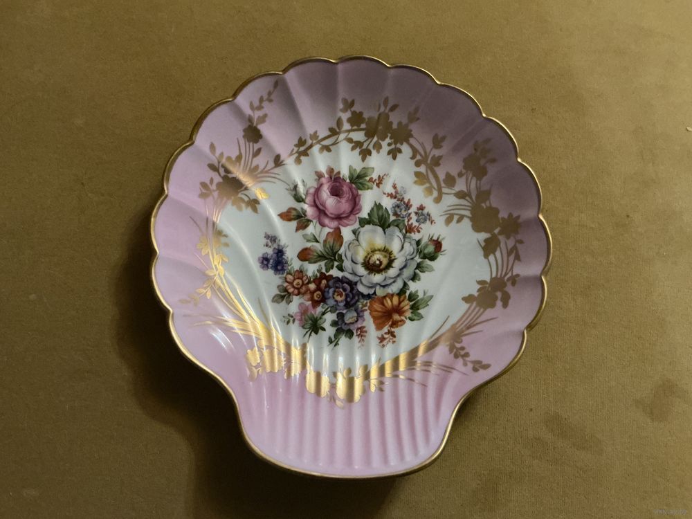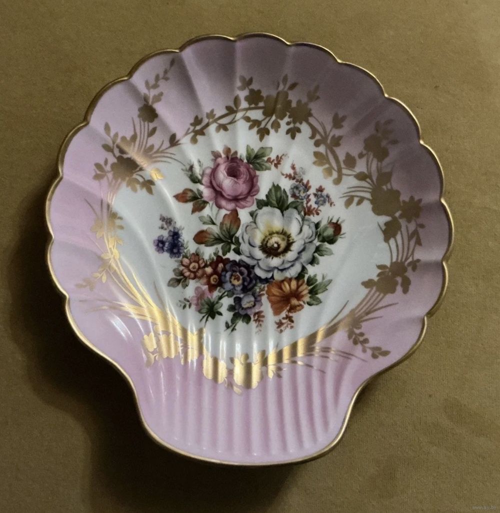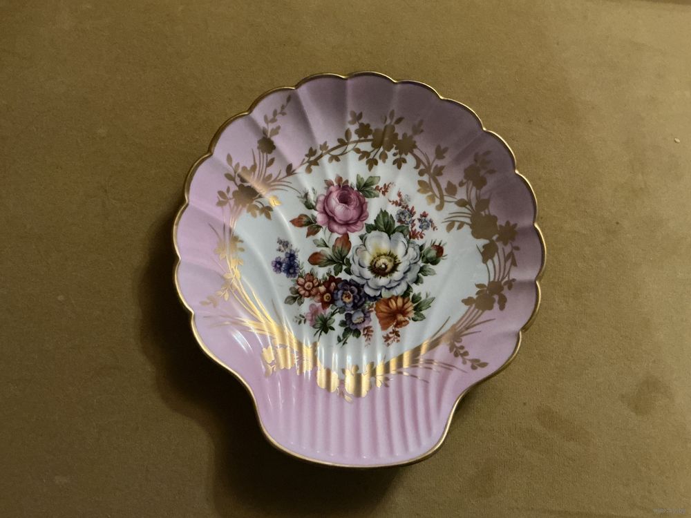 Шикарная тарелка , форма Ракушка , 24,5 см х 23 см , розовая глазурь, редкая , отличное состояние