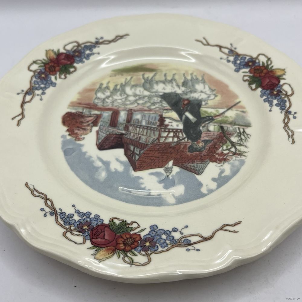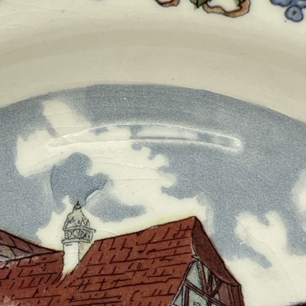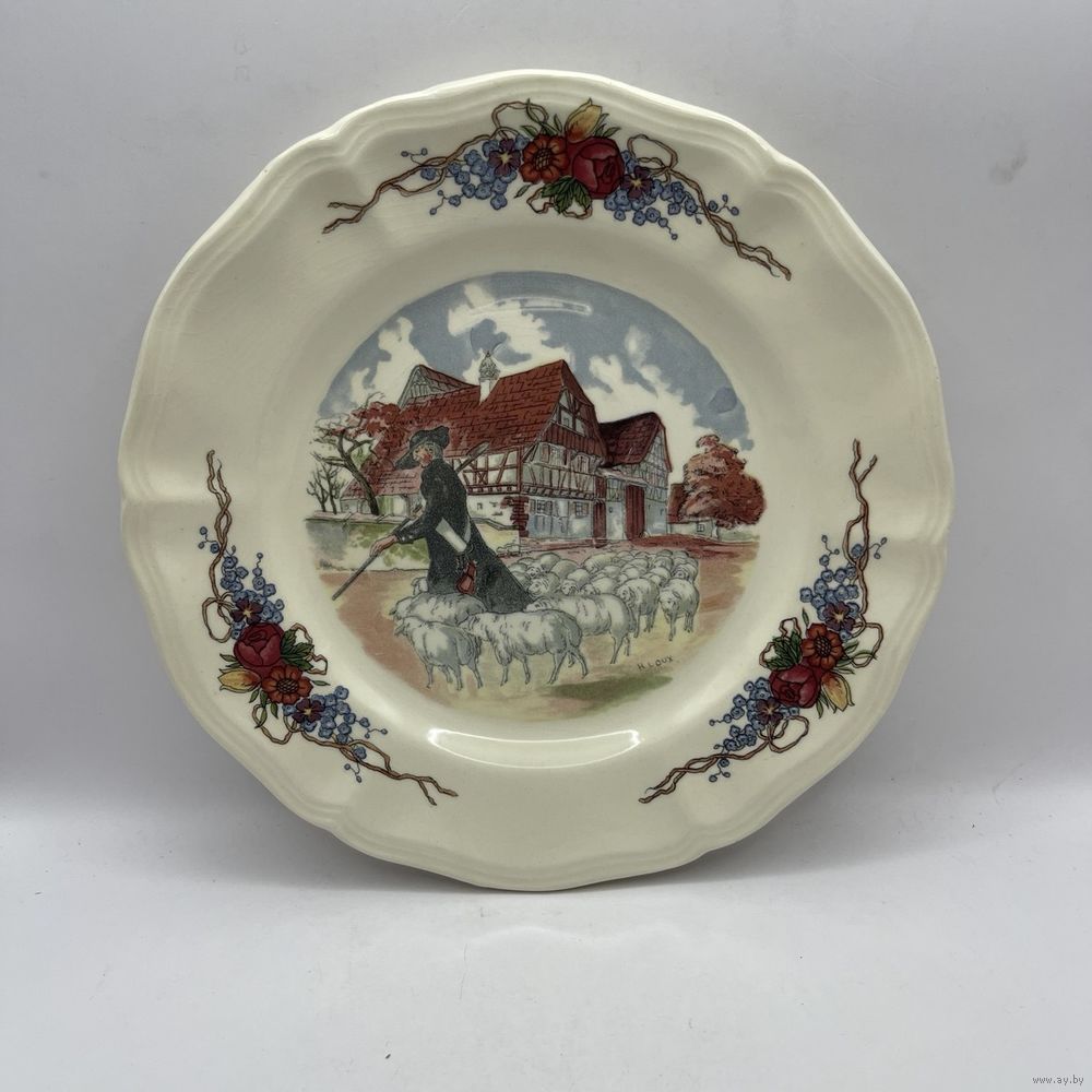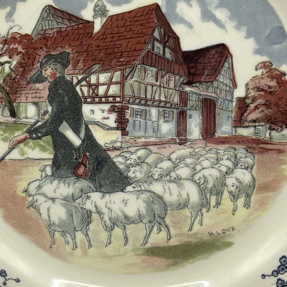 Антикварная фаянсовая тарелка ручной работы от мануфактуры Sarreguemines. Подглазурный ручной декор Obernai (Обернэ) с традиционными провинциальными сценами французского Эльзаса работы художника Анри Лу (Henri Loux). Франция. 1970-е г.г. Подглазурное клеймо. Диаметр 20 см. На обратной стороне несовершенства на глазури и следы от щипцов для обжига, как следствие ручной работы, не является дефектом. естественный кракелюр . Производственный дефект глазури (в глаза не бросается, см. фото, учтено в цене). Можно мыть в посудомоечной машине.