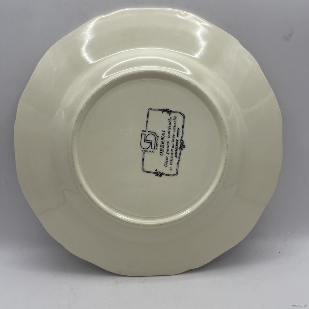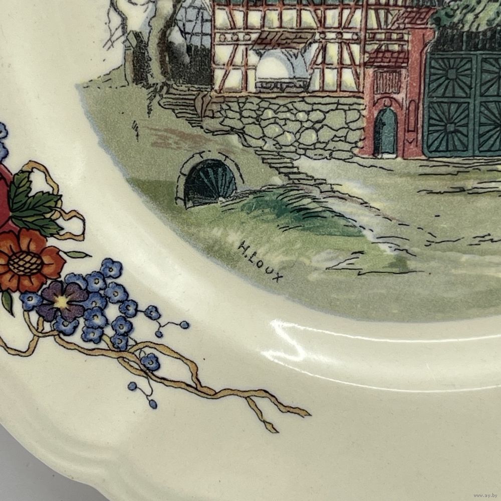 Антикварная фаянсовая тарелка ручной работы от мануфактуры Sarreguemines. Подглазурный ручной декор Obernai (Обернэ) с традиционными провинциальными сценами французского Эльзаса работы художника Анри Лу (Henri Loux). Франция. 1970-е г.г. Подглазурное клеймо. Диаметр 20 см. На обратной стороне несовершенства на глазури и следы от щипцов для обжига, как следствие ручной работы, не является дефектом. Можно мыть в посудомоечной машине.