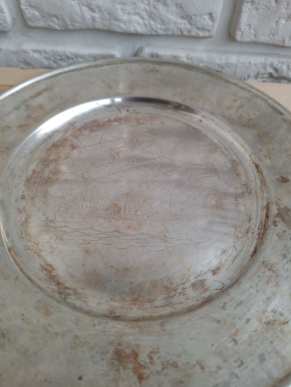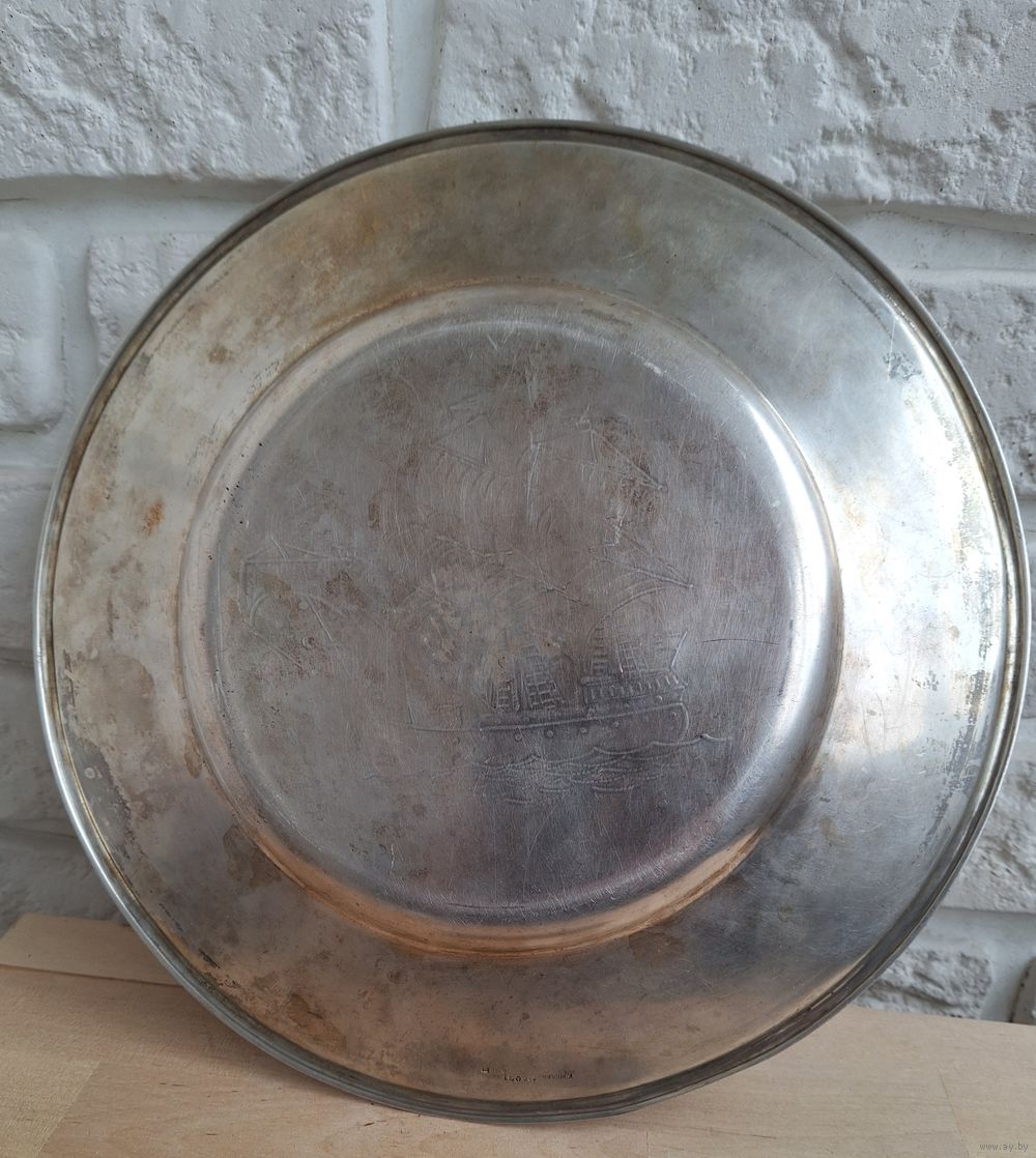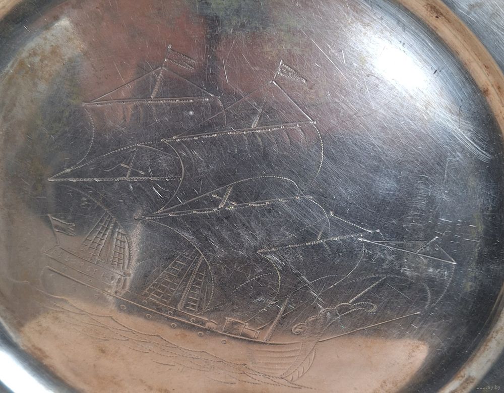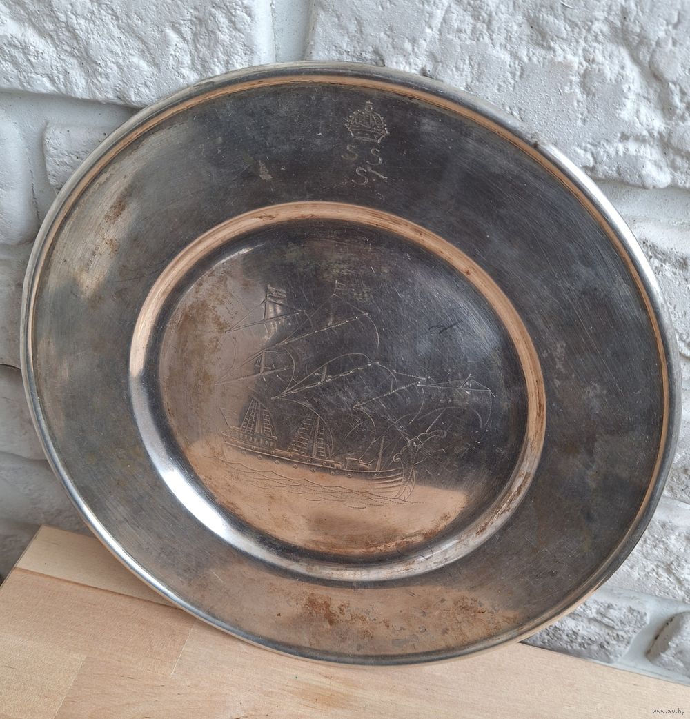 Тарелка, Швеция, конец 19 начало 20 века. Вес: 384 грамма. Мастер Карл Андерсон, поставщик Королевского Двора Швеции. Фрегат- чеканка. Диаметр тарелки: 27 см, вес: 384 грамма. Серебро 830 проба. Переклеймение на 84 Санкт Петербург, и 830 голова вправо СССР. Долгий путь у предмета. Толстая, массивная, большая, красивая. С морской тематикой.