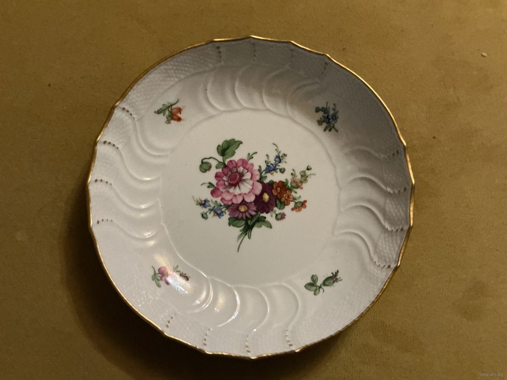 Тарелка , рельефный фарфор, диаметр 20 см , без сколов и трещин, известная фирма