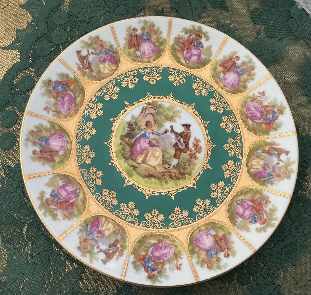 Тарелка зелёная глазурь, диаметр 26 см , позолота, без сколов и трещин Есть две тарелки бордо , цена за 1 шт , парные , рисунки разные , диаметр 26 см , позолота , без сколов и трещин