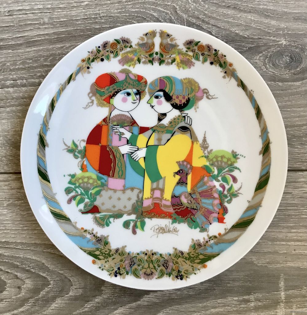Фарфоровые декоративные тарелки известной немецкой мануфактуры Rosenthal из лимитированной серии «Музыканты», автор рисунков известный датский художник Bjorn Winblad. В наличии тарелки, выпущенные в 1994, 1995 и 1996гг. Диаметр 21см., с обратной стороны имеются отверстия для подвеса. Состояние хорошее.