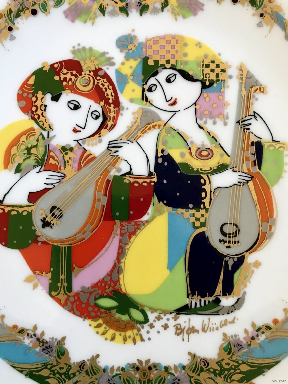 Фарфоровые декоративные тарелки известной немецкой мануфактуры Rosenthal из лимитированной серии «Музыканты», автор рисунков известный датский художник Bjorn Winblad. В наличии тарелки, выпущенные в 1994, 1995 и 1996гг. Диаметр 21см., с обратной стороны имеются отверстия для подвеса. Состояние хорошее.