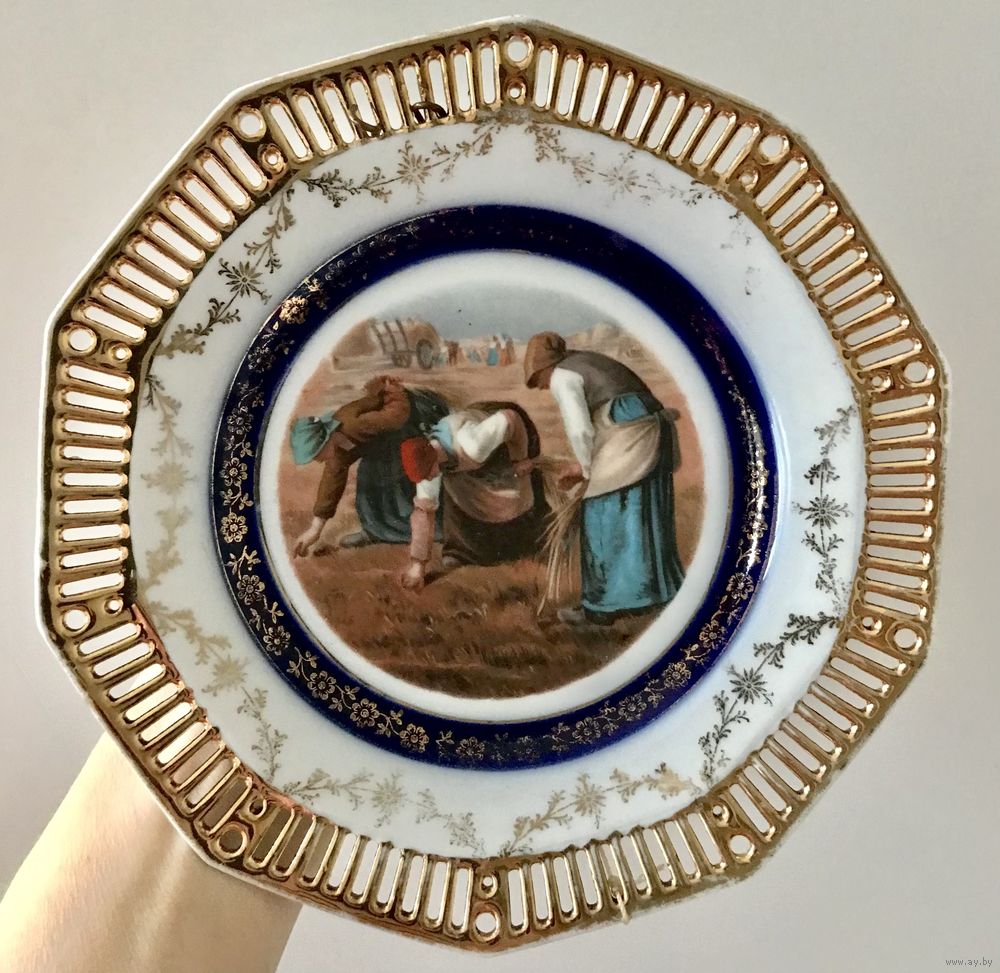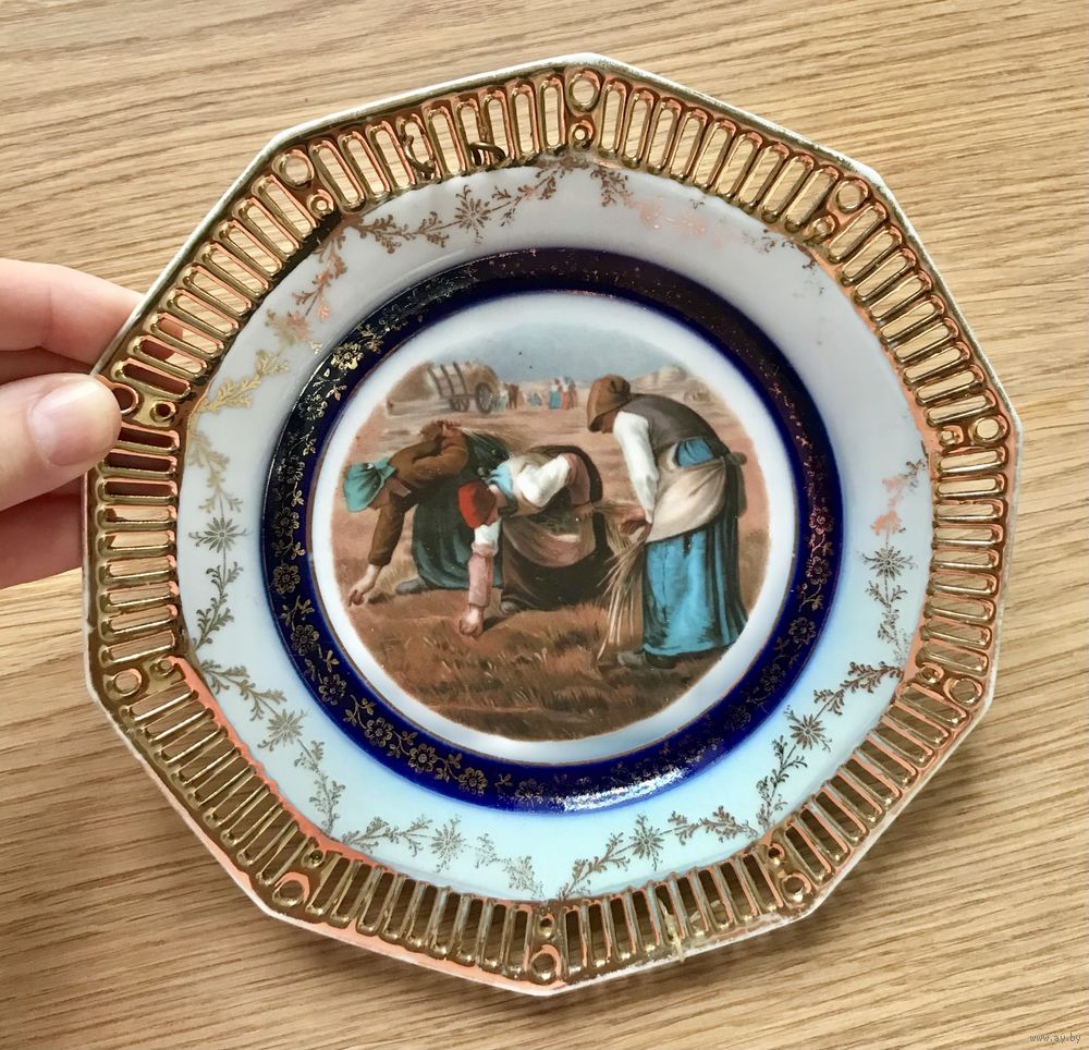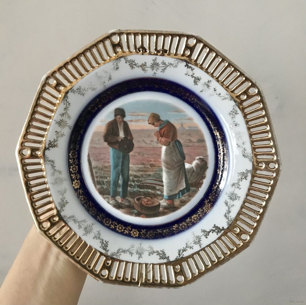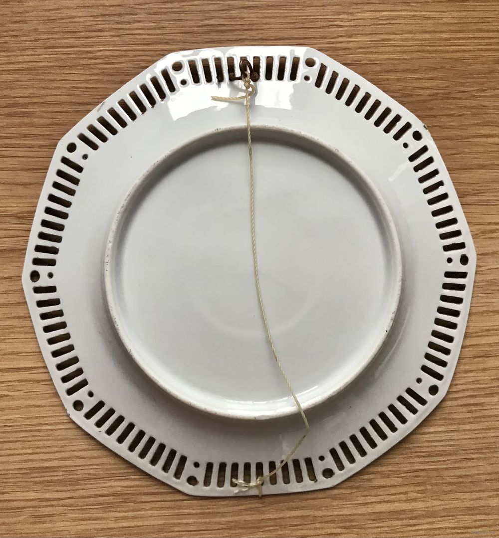 Фарфоровые декоративные тарелки начала XX века, Германия. Деколь, кобальт, позолота (местами есть потёртости). На одной тарелке есть незначительная трещинка, которая с лицевой стороны практически не заметна (фото 3,4). Размер тарелок 18,5х18см. Продаются парой. Цена указана за пару.