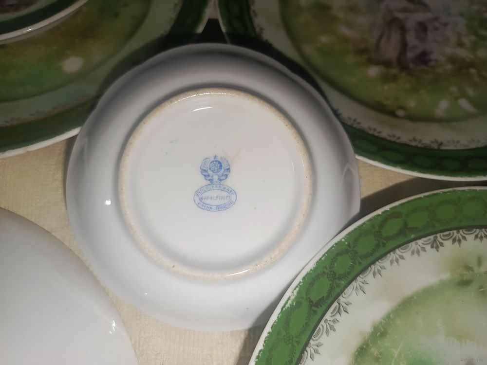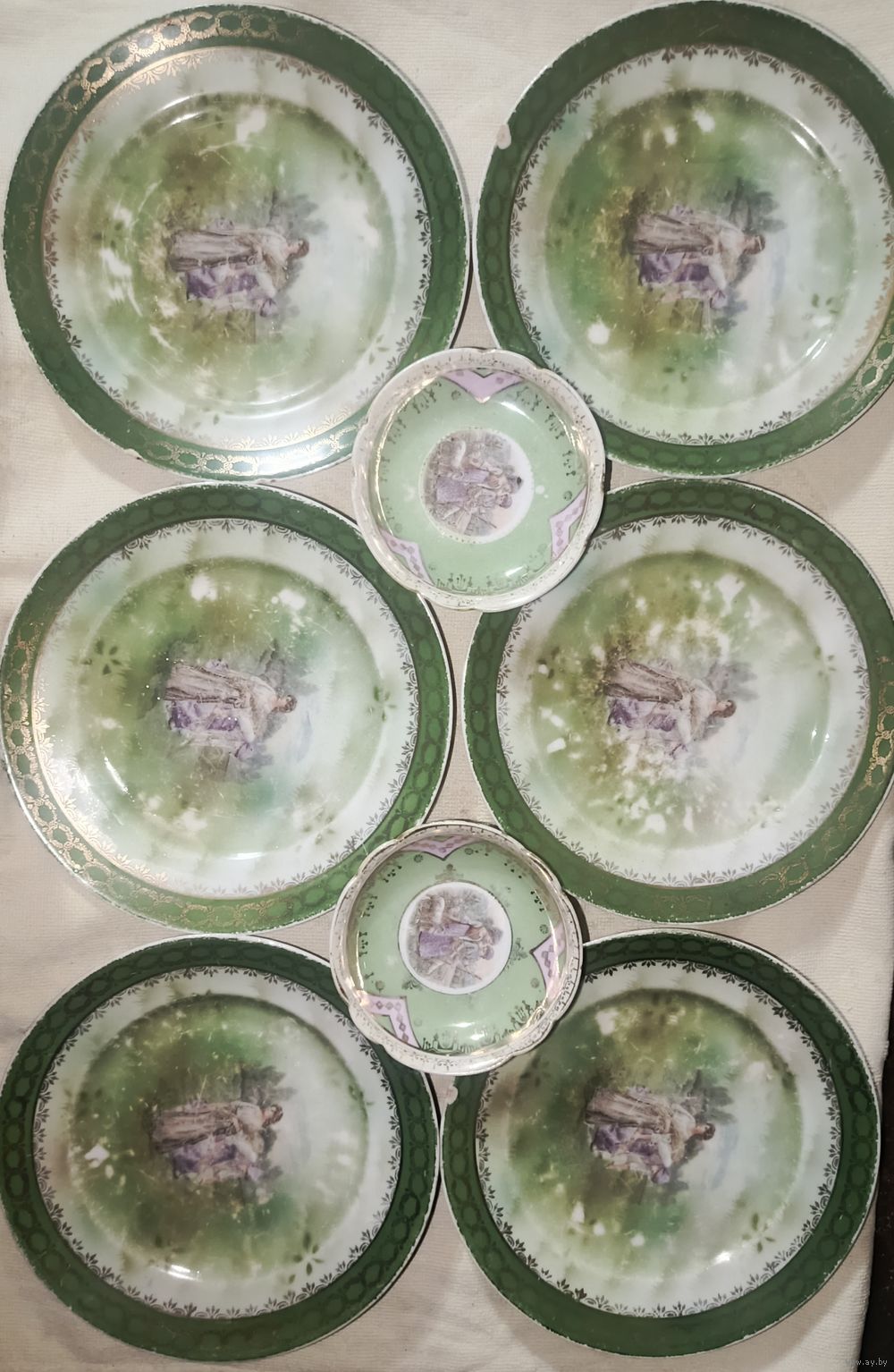 Дулёвский фарфоровый завод . 1920-1930 год Продажа комплектом 6 тарелок и 2 розетки. Все ньюансы видны на фото. Смотрите внимательно. Претензии после покупки не принимаются.