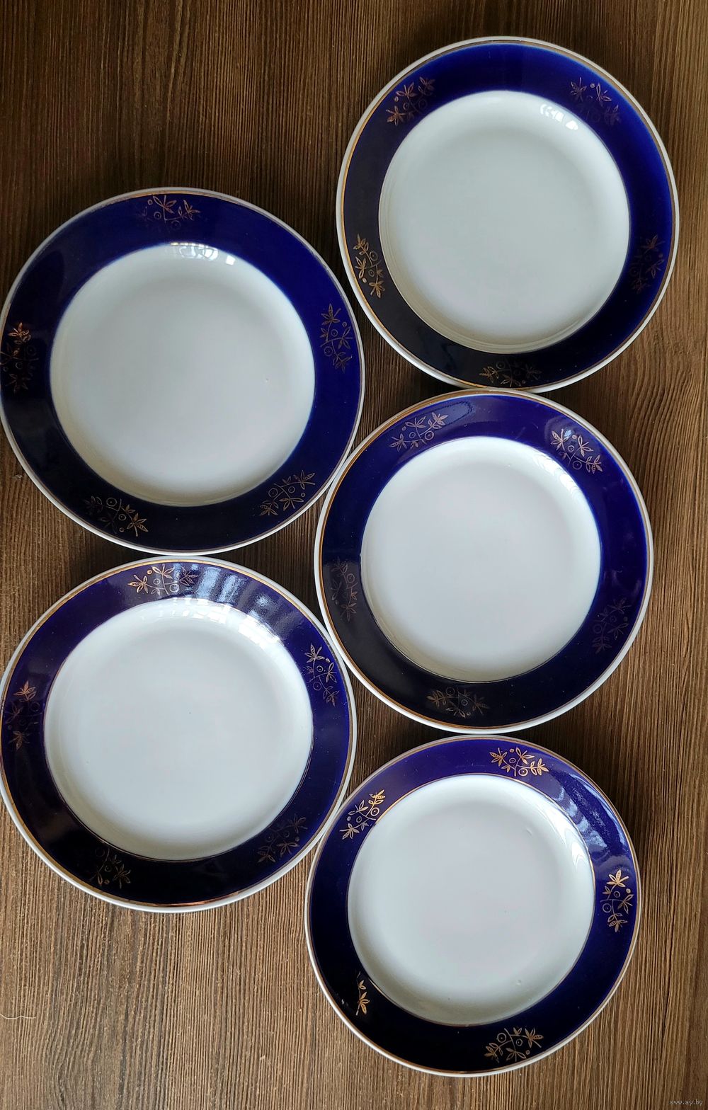 Тарелки 17,5 см, кобальт, позолота. Барановский фарфоровый завод, клейма синего и зеленого цвета 1960-70 гг. В наличии 5 шт.