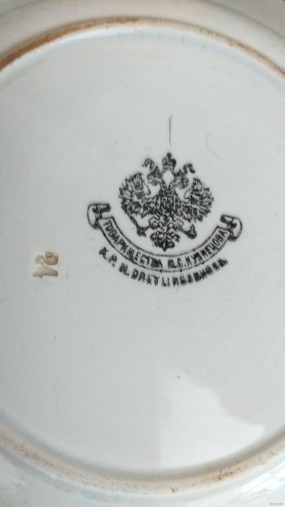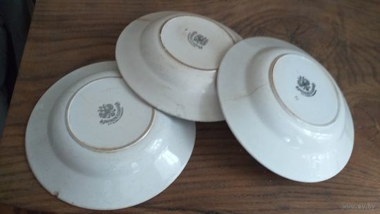 Тарелки 3 штуки диаметр 23,5 см. Товарищество производства фарфоровых и фаянсовых изделий М.С. Кузнецова. Клеймо 1887-1915 гг. Фабрика М.С. Кузнецова в Риге.Продаю одним лотом.