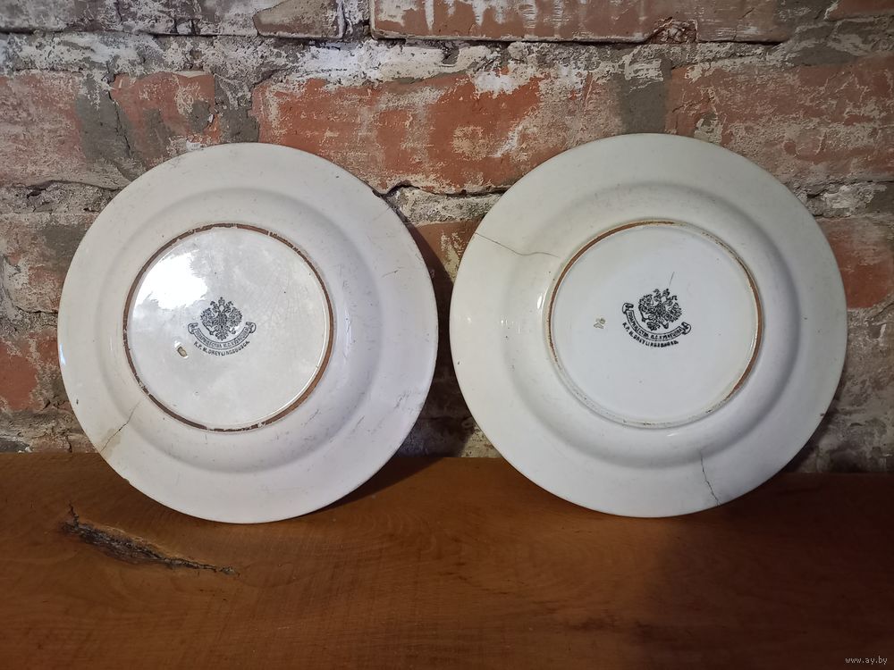 Тарелки 2 штуки диаметр 23,5 см. Товарищество производства фарфоровых и фаянсовых изделий М.С. Кузнецова. Клеймо 1887-1915 гг. Фабрика М.С. Кузнецова в Риге. Продаю одним лотом.