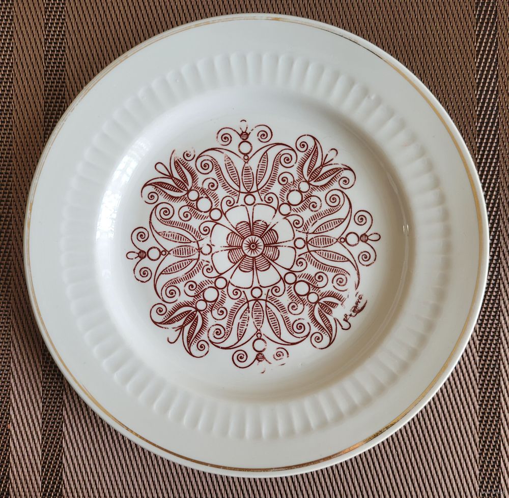 Тарелки 20 см, фарфор, деколь, отводка золотом, рельеф, синее клеймо 1968-83 гг. Минский фарфоро-фаянсовый завод. В наличии 3 шт.