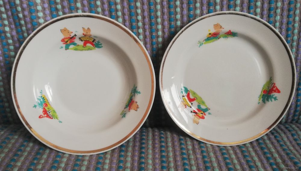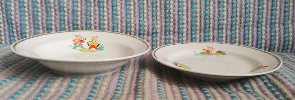 Мелкая и глубокая тарелки одного набора.