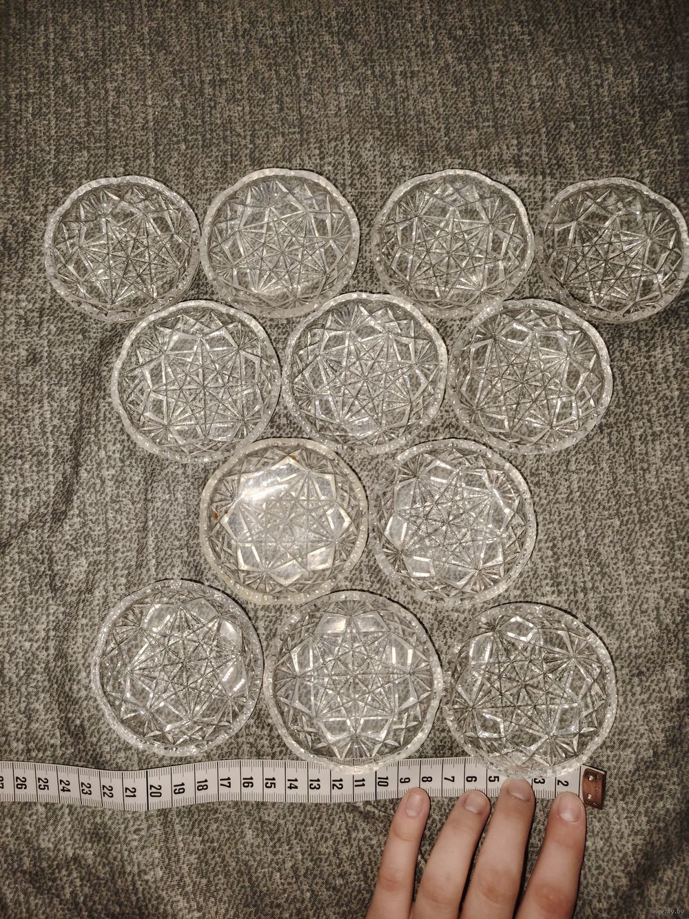 Это набор винтажных стеклянных розеток для варенья или подстаканников с узором «звезда», популярный в СССР.
