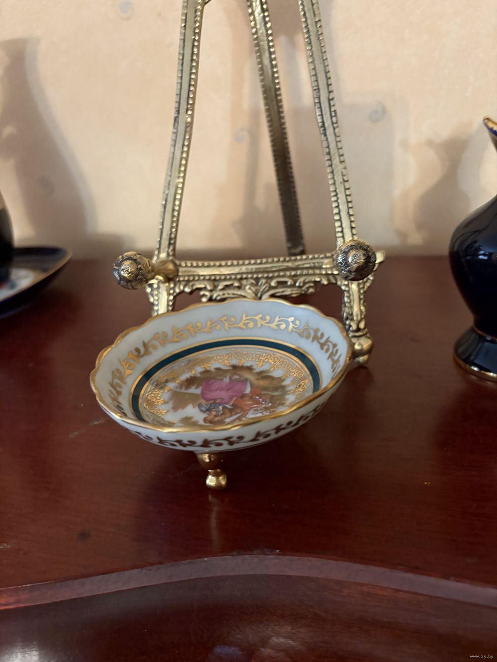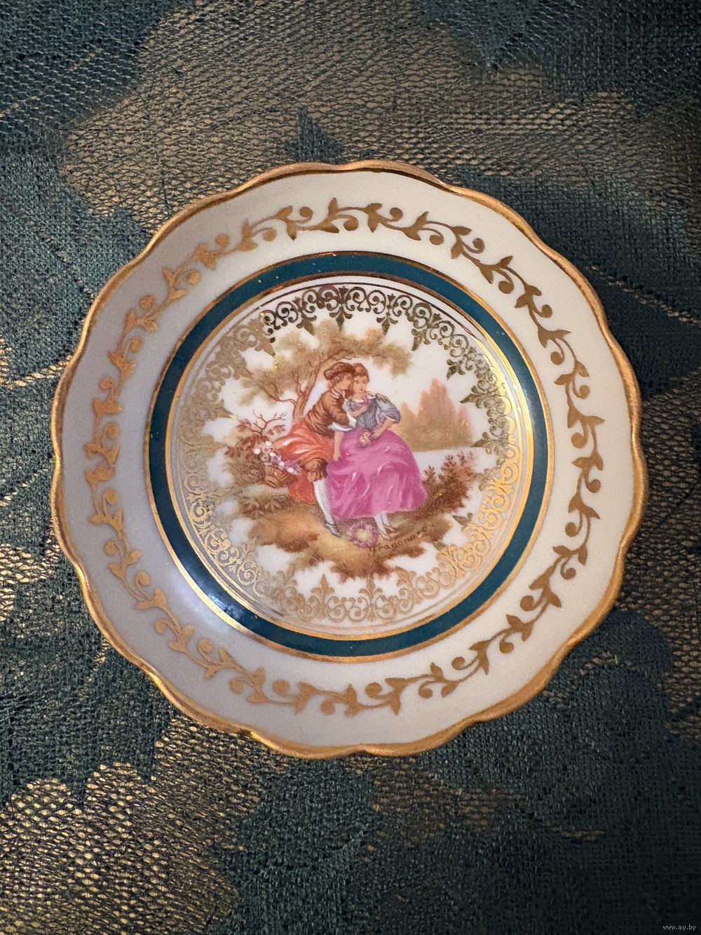 Тарелочка на ножках, диаметр 9 см , без потери, сине-зеленая полоса