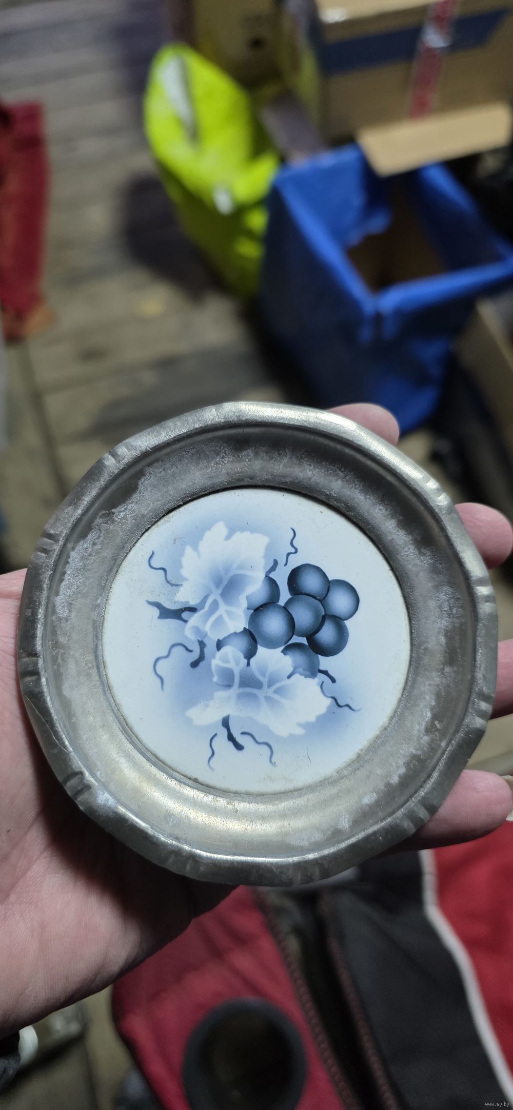 Тарелочка оловянная с фарфоровой вставкой. Германия. Смотрите другие мои лоты. Высылаю почтой ЕВРОПОЧТОЙ